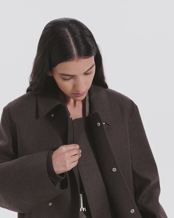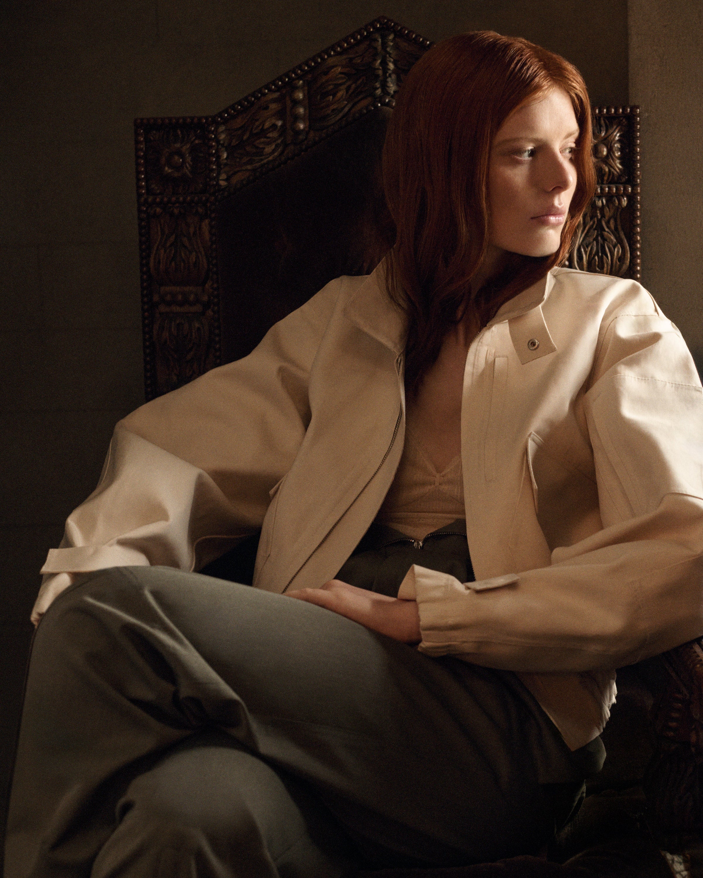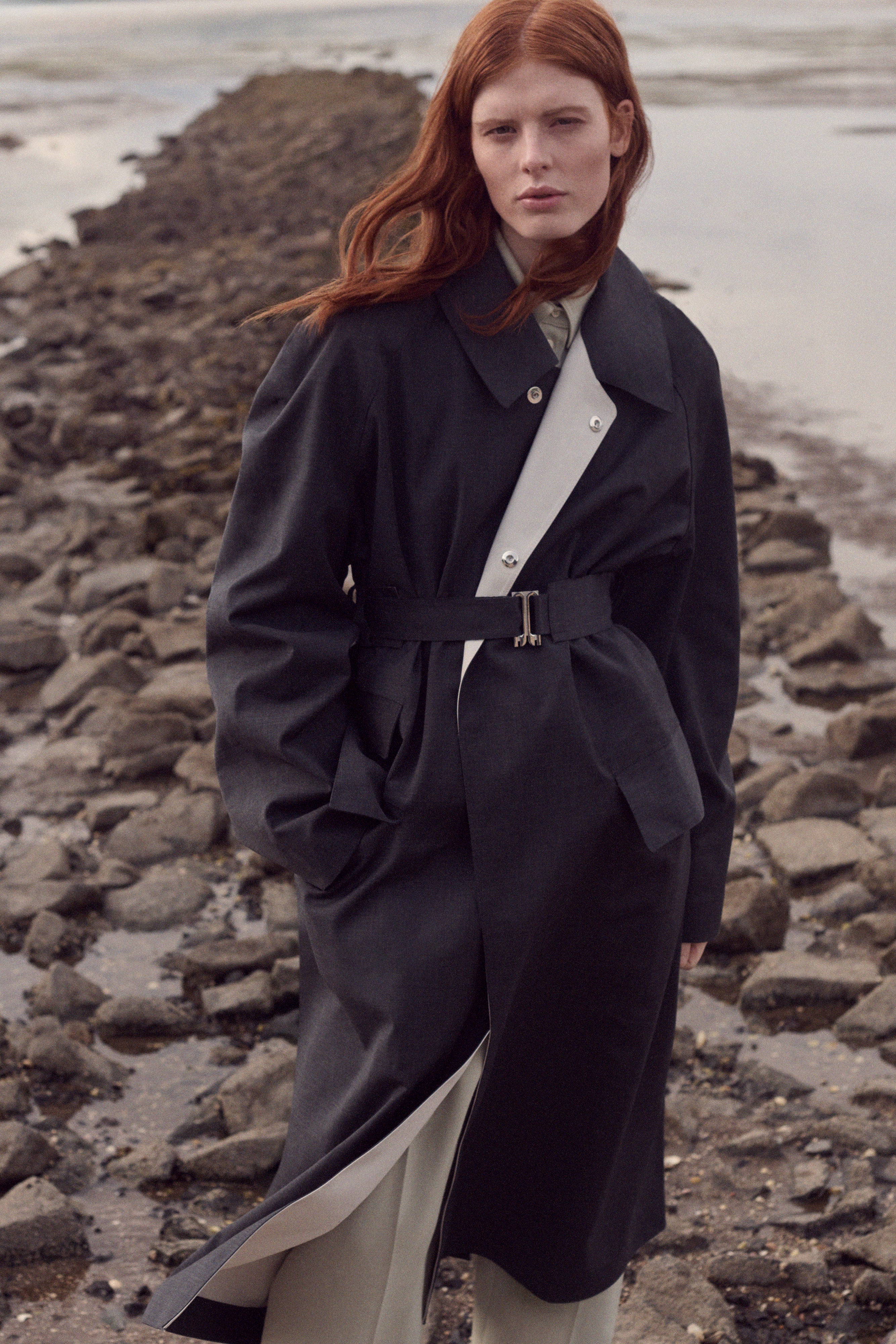 The 6 piece capsule includes a bomber jacket, Caban jacket, as well as the iconic Mackintosh trench coat silhouette, reimagined with the signature Victoria Beckham B belt buckle. Available in muted tones of Brown, Rose Putty and Charcoal, complete with floral print linings, inspired by one of the first pieces of Garu Hume’s art from Beckham’s personal collection.