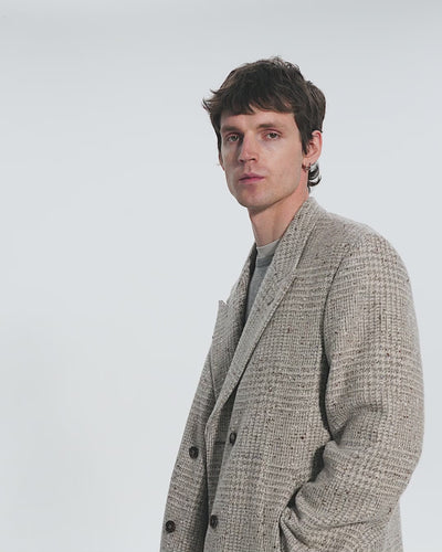 The Crawford is a new four-button double-breasted, 100% cashmere, chesterfield coat. It's a modern chesterfield coat featuring a beautiful silhouette thanks to its three-dimensional pattern structure, slender peak lapels that suit a wide range of styles for both formal and casual wear, a low gorge line, and a minimalist design without a breast pocket. Its unconstructed tailoring ensures a light and comfortable fit.