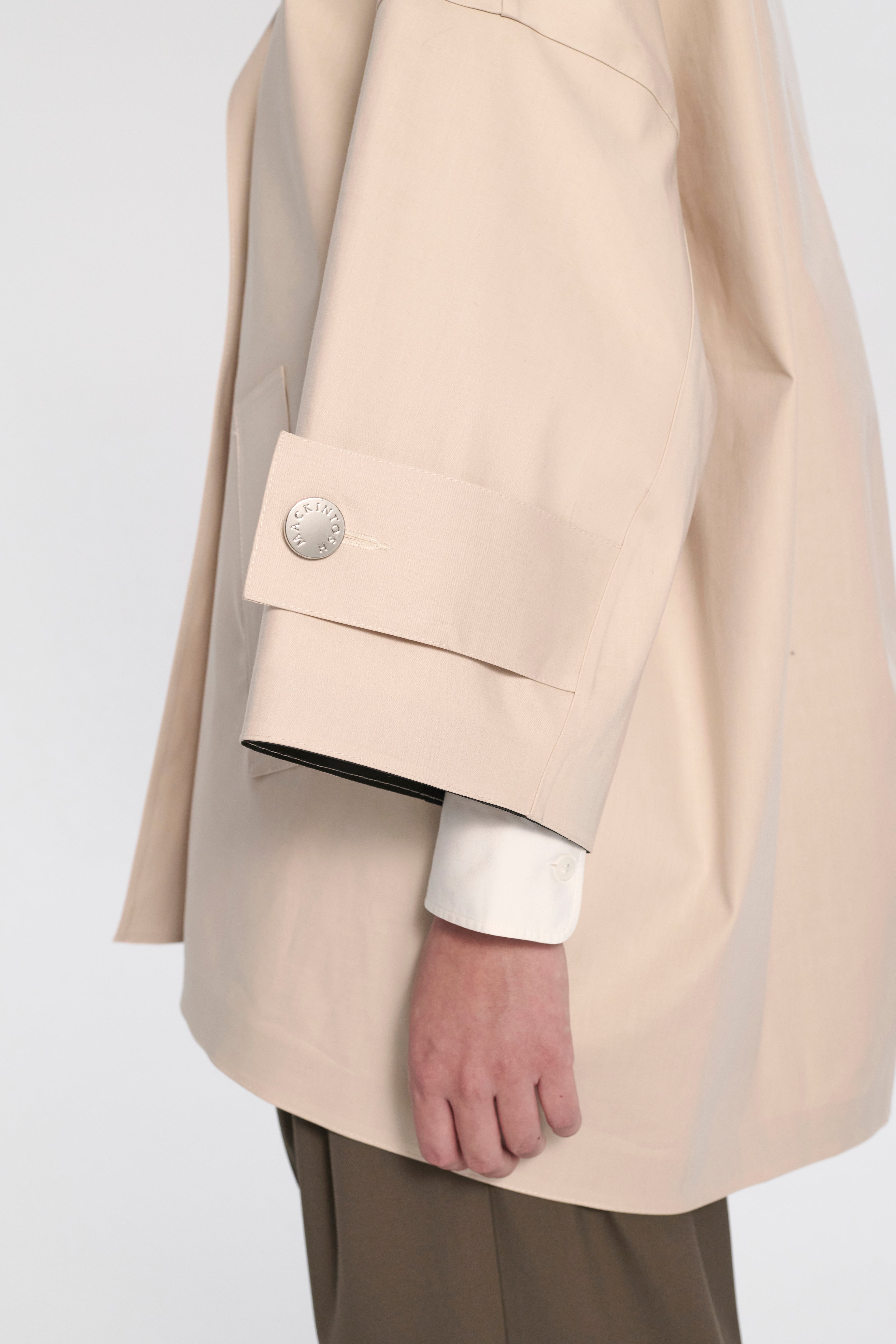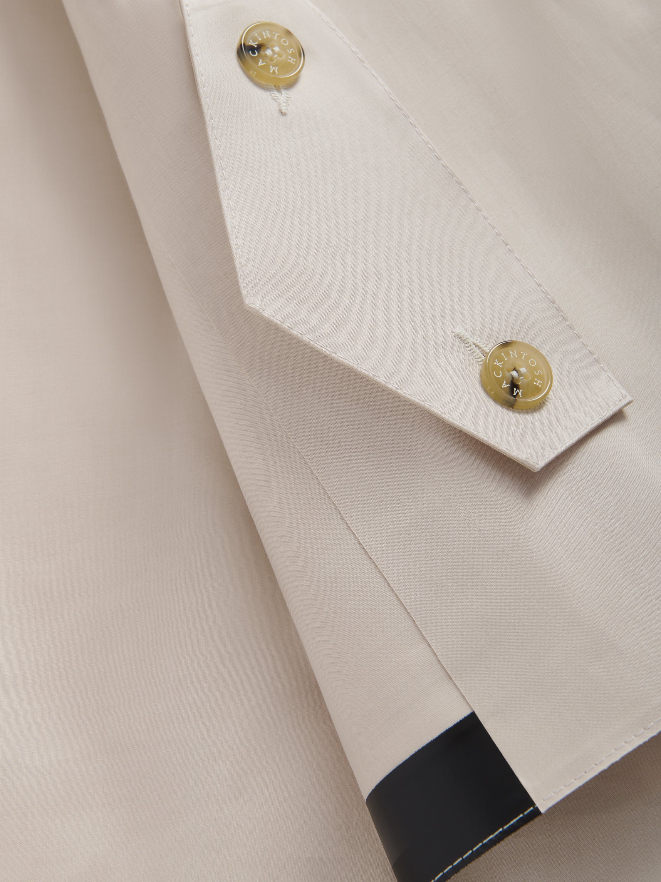 The oversized, elegant cocoon design of this cropped-style coat is easily worn. With standout silver button detailing, the coat is undeniably stylish whilst also being hand-made from Mackintosh rubberised cotton making it completely waterproof, with hand-taped seams to keep wet weather out.