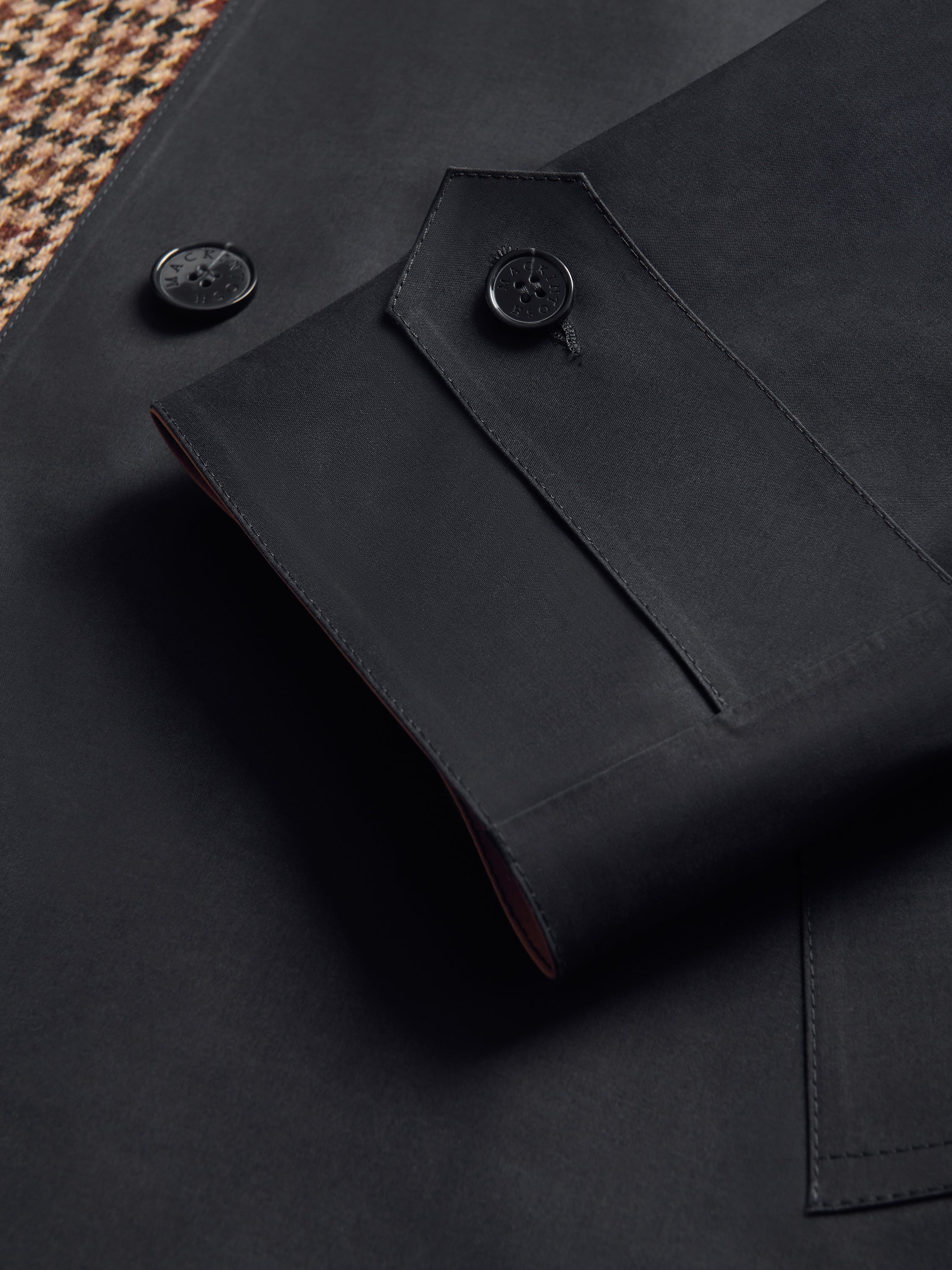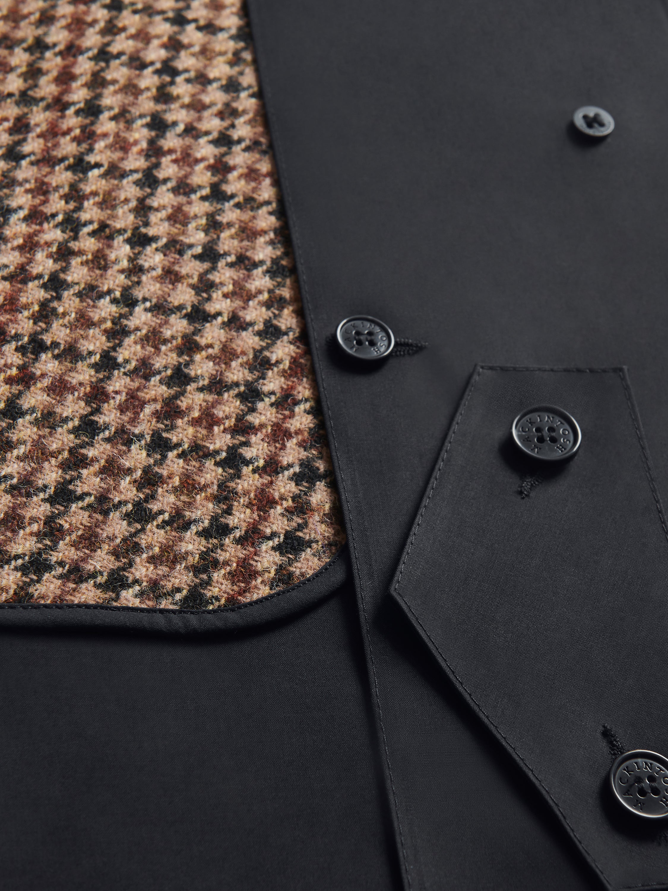 A stand-fall collar coat that features a contrast colour detail and detachable Harris Tweed lining for year-round wear.