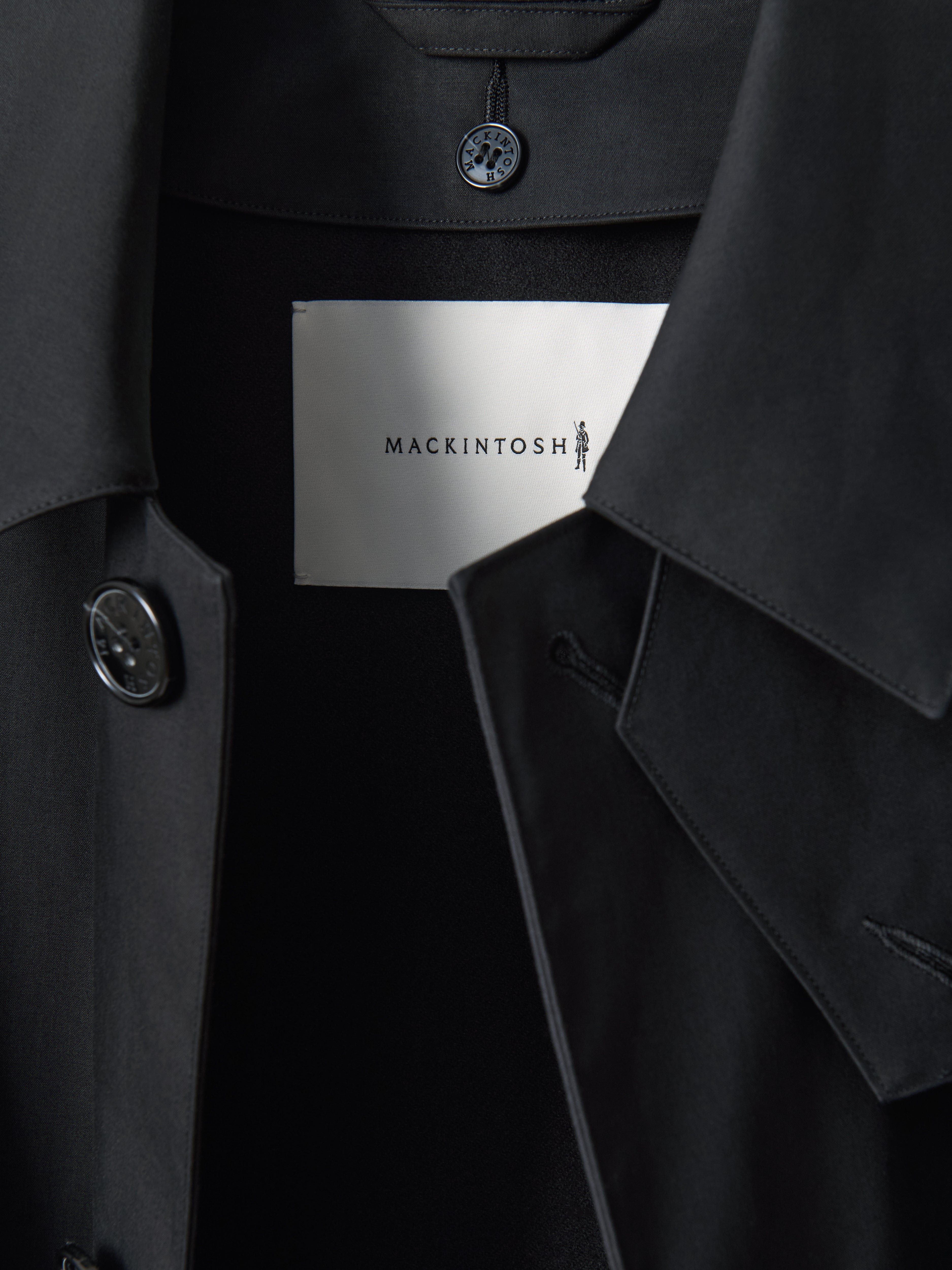 Short balmacaan coat with drop shoulders and a detachable wool liner making it suitable for all seasons.