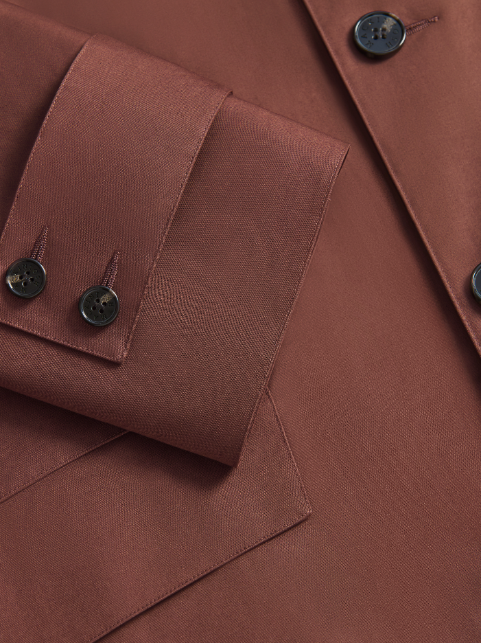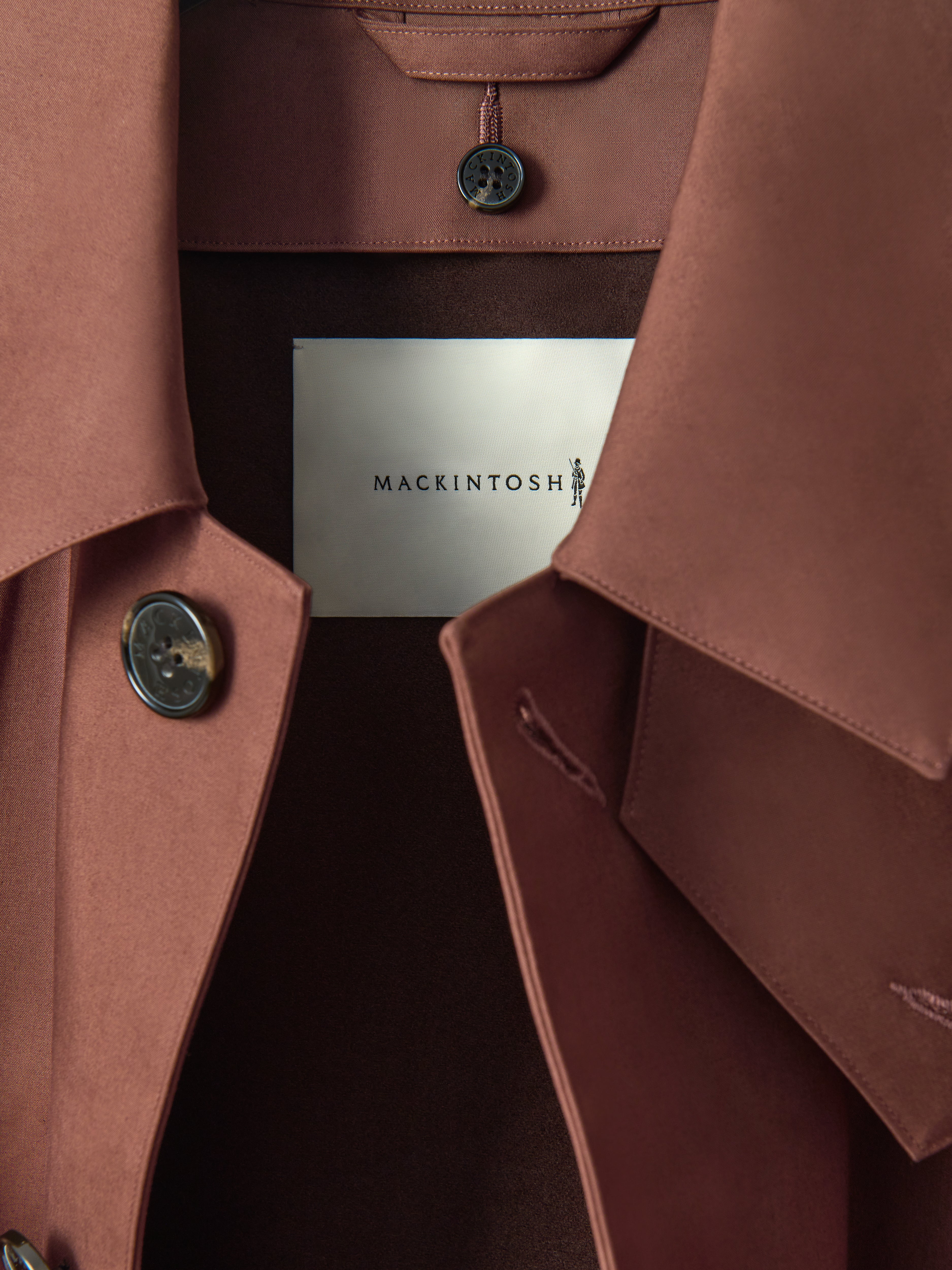 Short balmacaan coat with drop shoulders and a detachable wool liner making it suitable for all seasons.
