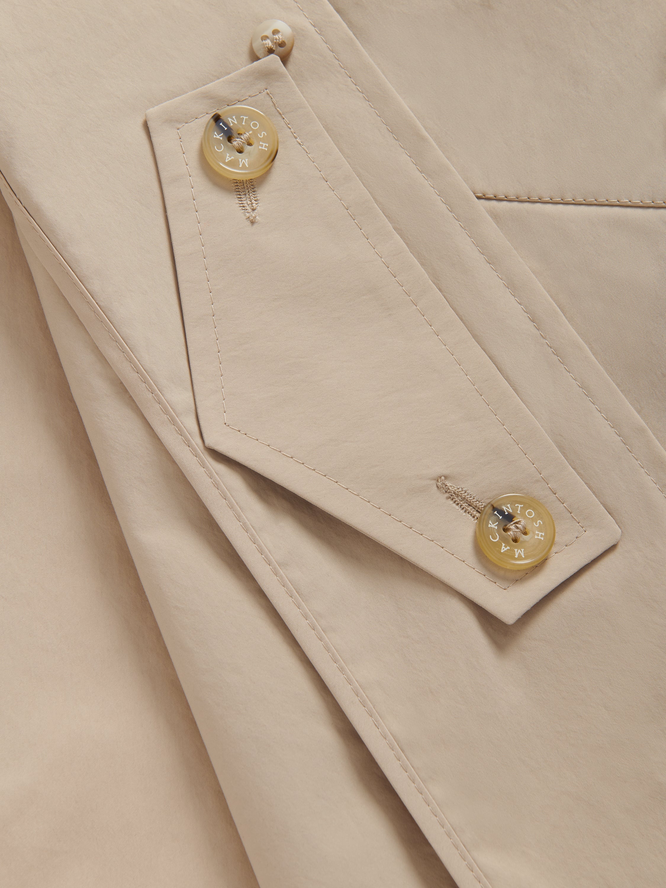 This version of the Humbie coat, comes in a shorter style shape, offering a flatteringly flared A-line shape, with an off-shoulder stainless steel collar. Made from 60% recycled materials, the fabric is highly water-repellent whilst remaining lightweight for everyday wear.