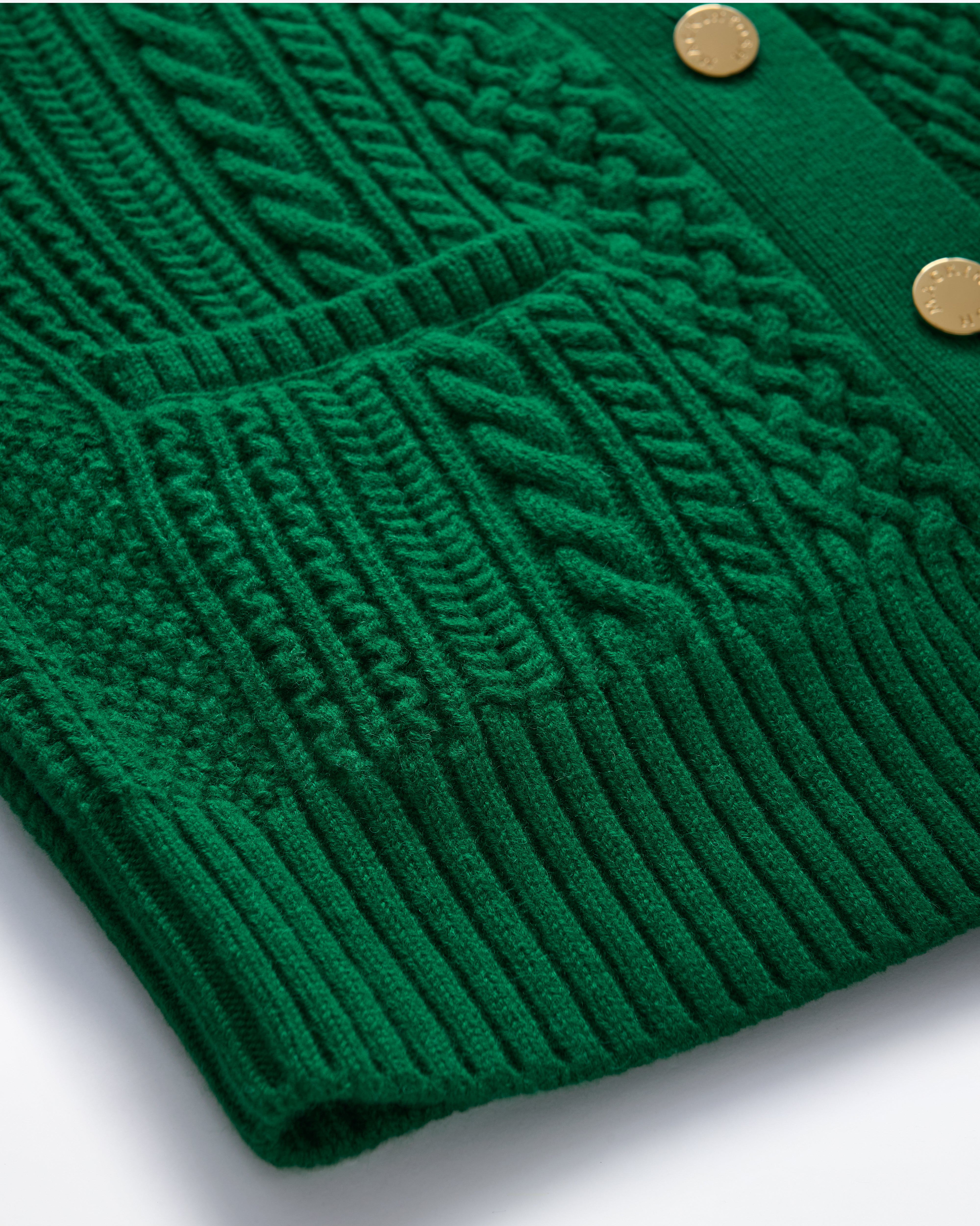 The Cable Cardigan is crafted by BATONER in a wonderful blend of 80% wool and 20% Alpaca.