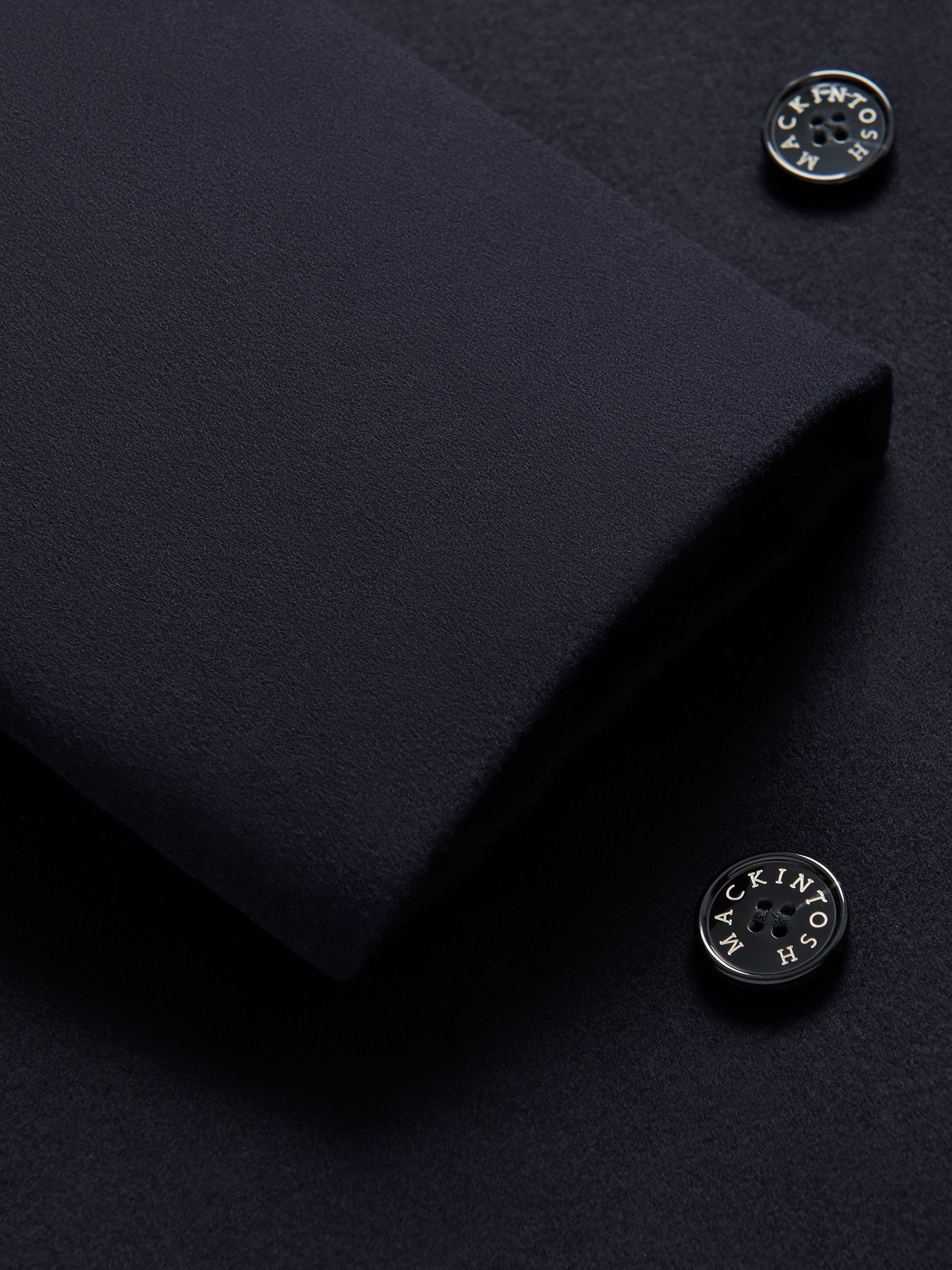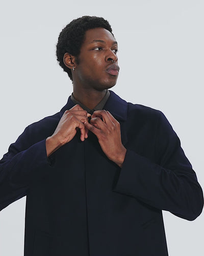 Our signature Dunkeld Coat in a Navy, Loro Piana Rain System wool.