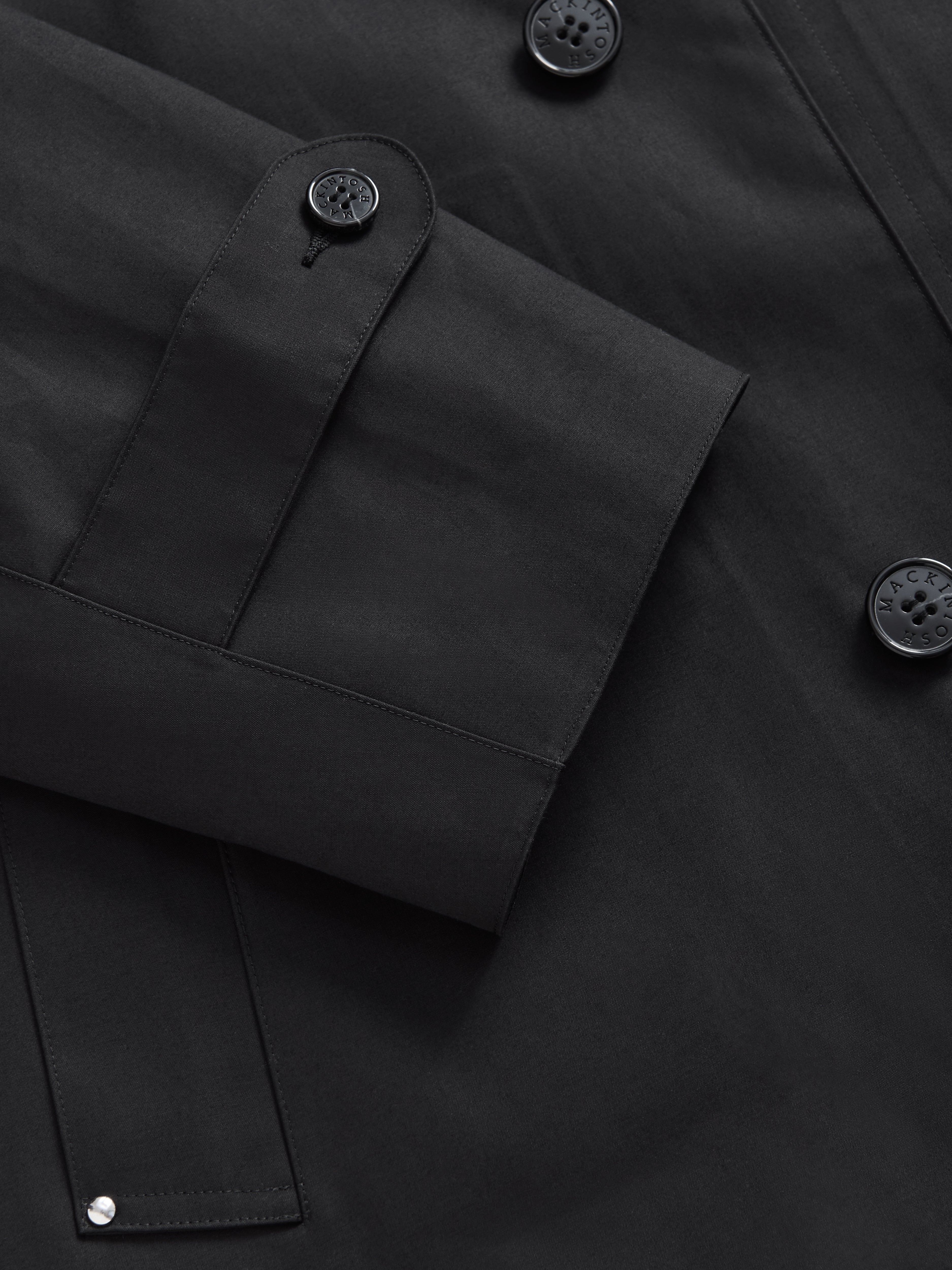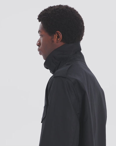 A single-breasted waterproof coat designed with the inspiration of the military coat worn by the British Army's dispatch riders in World War II.