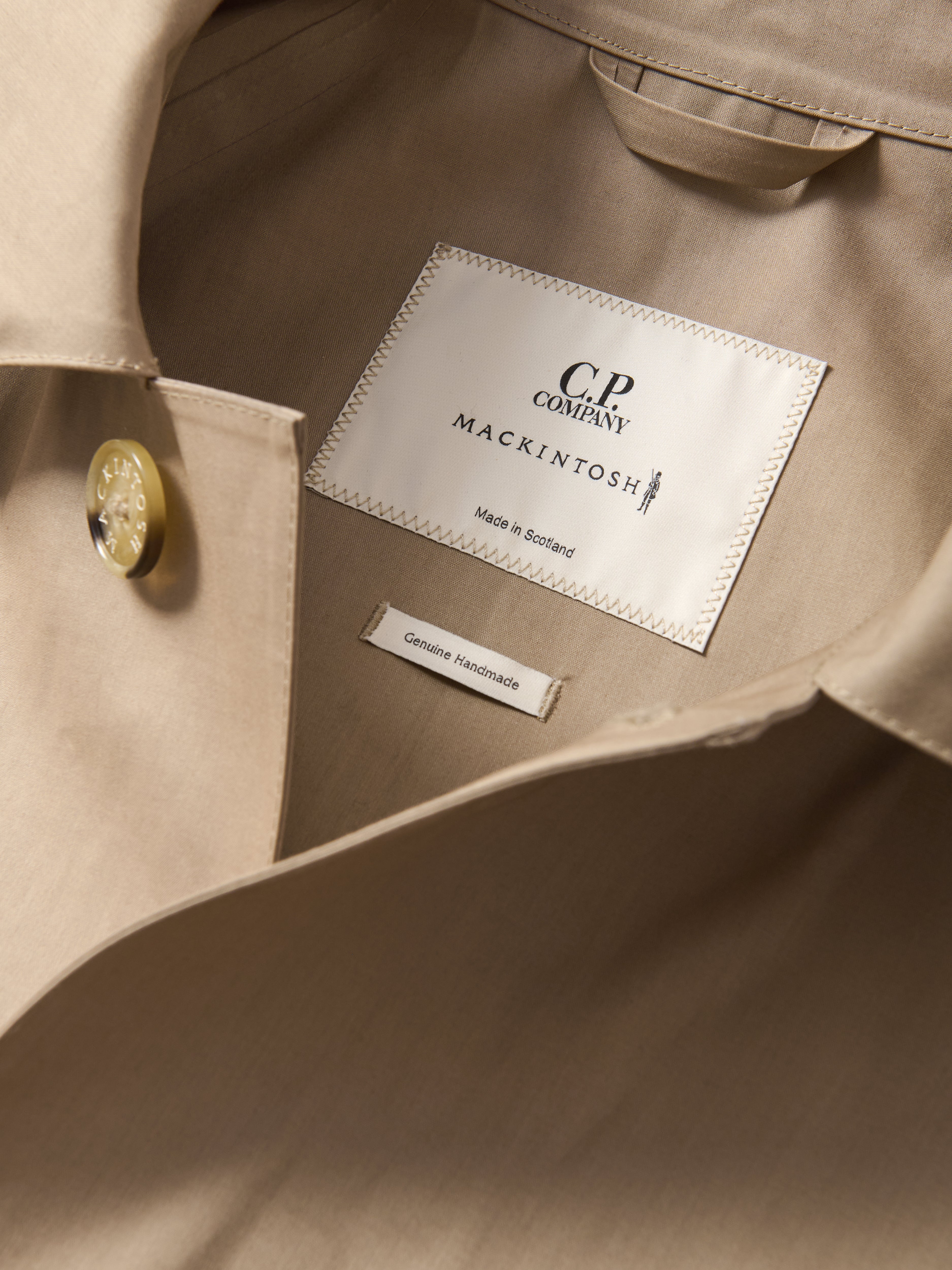 Car coat in bonded cotton, made in Scotland for the collaboration between Mackintosh and C.P. Company.