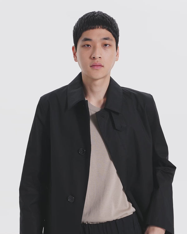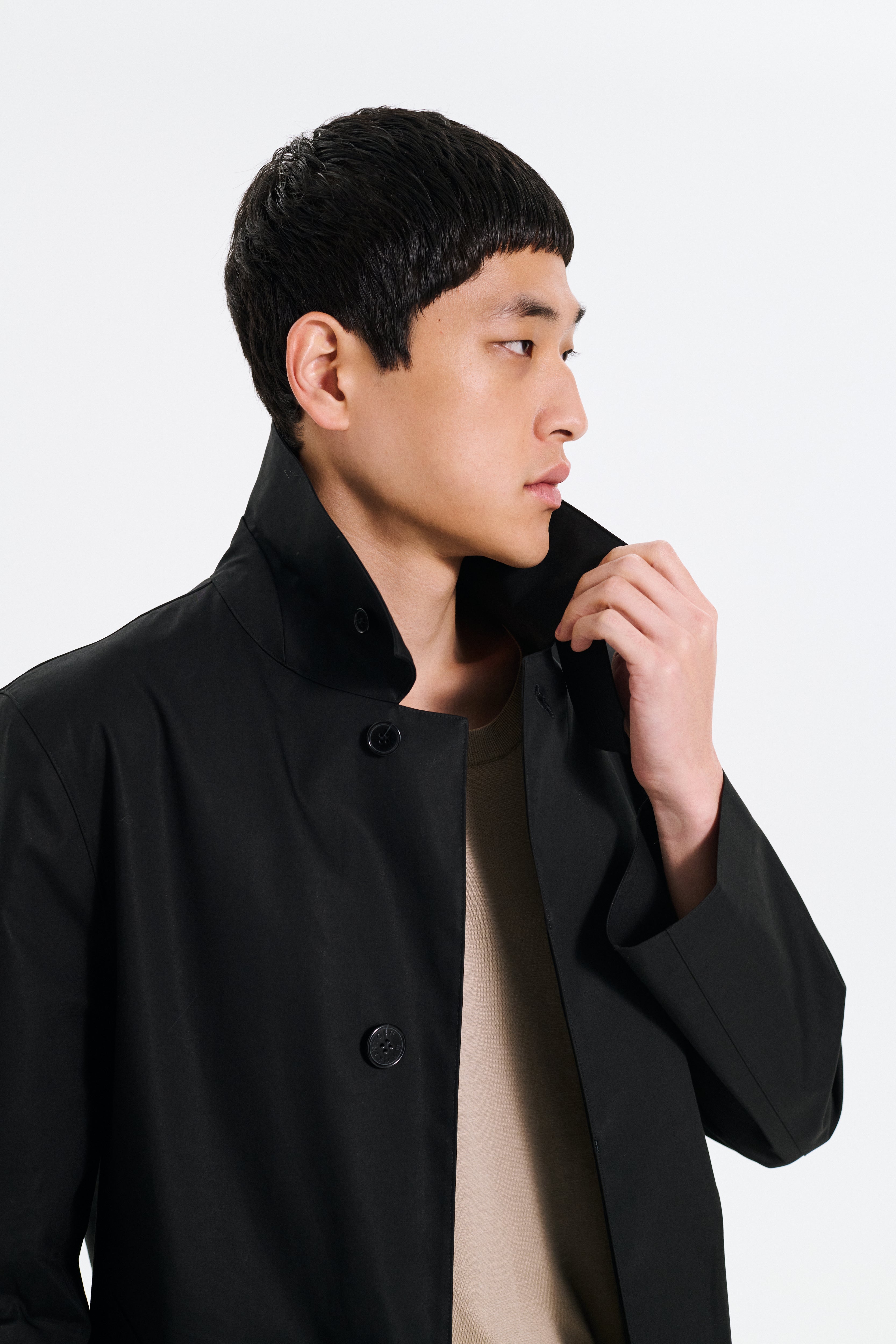 The Dunoon Raintec Single-Breasted Rain Coat is a thigh-length coat inspired by classic Mackintosh Coats from the archive. It features a sophisticated collar shape, three-dimensional pattern with minimalist design and silhouette. Slit pockets and front placket hide the buttons, keeping the design sleek, while the Raintec shell and taped seams keep the rain out and gives excellent breathability in between sun and rain showers.