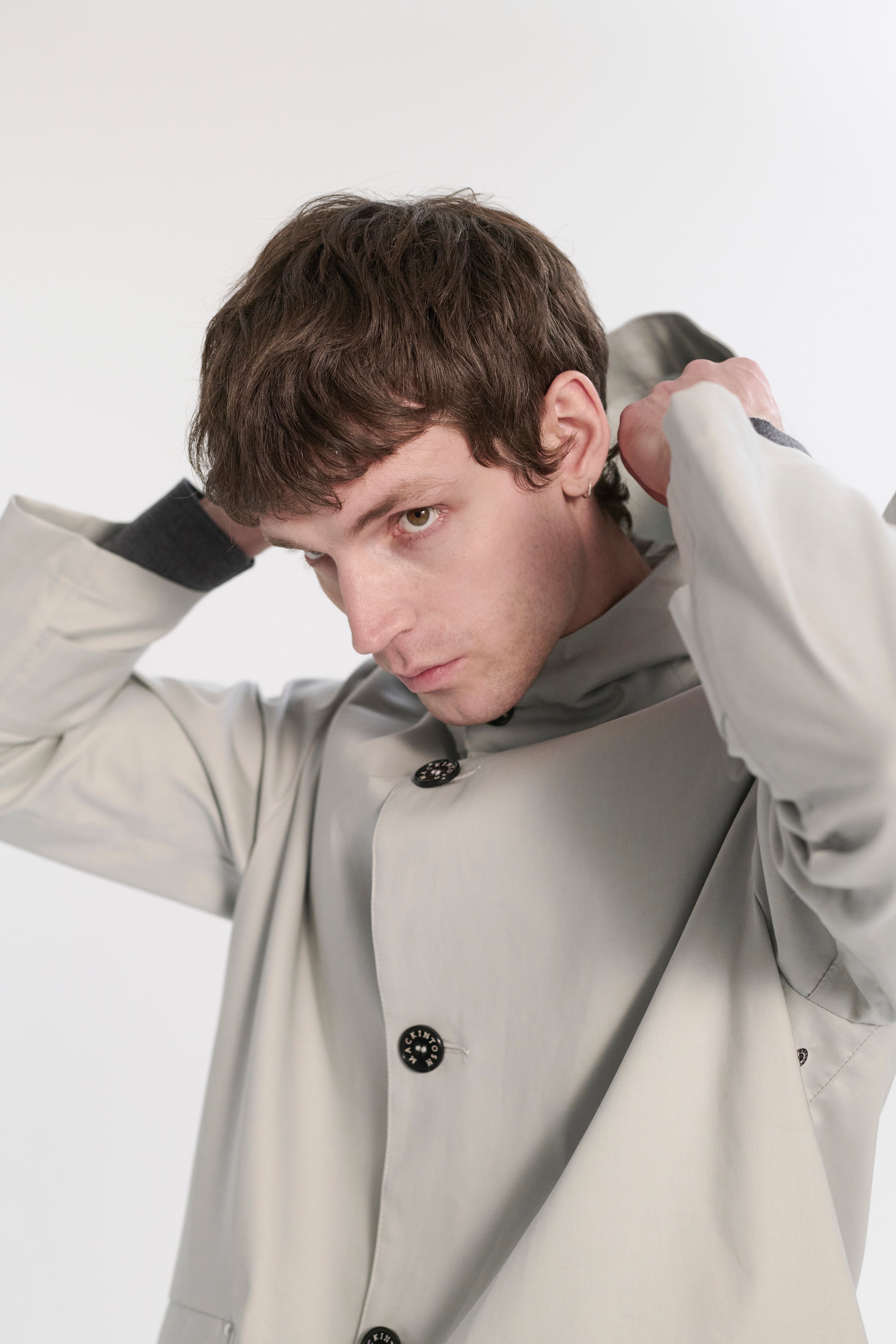 This version of the Humbie overcoat boasts the same wide A-line silhouette as the original, with the addition of a fitted, fixed hood. Immaculately constructed from Raintec, it is waterproof and features cuff adjusters and rivets at the flap pockets for a contemporary twist.