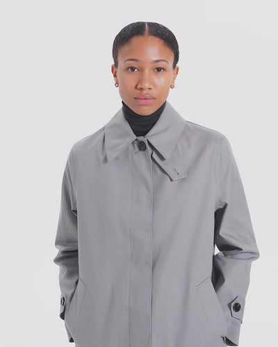 The Macintosh ladies signature model. This piece has a timeless, minimalist design that is not influenced by trends, and a beautiful A-line silhouette. Comes with a detachable liner made making it suitable for all seasons.