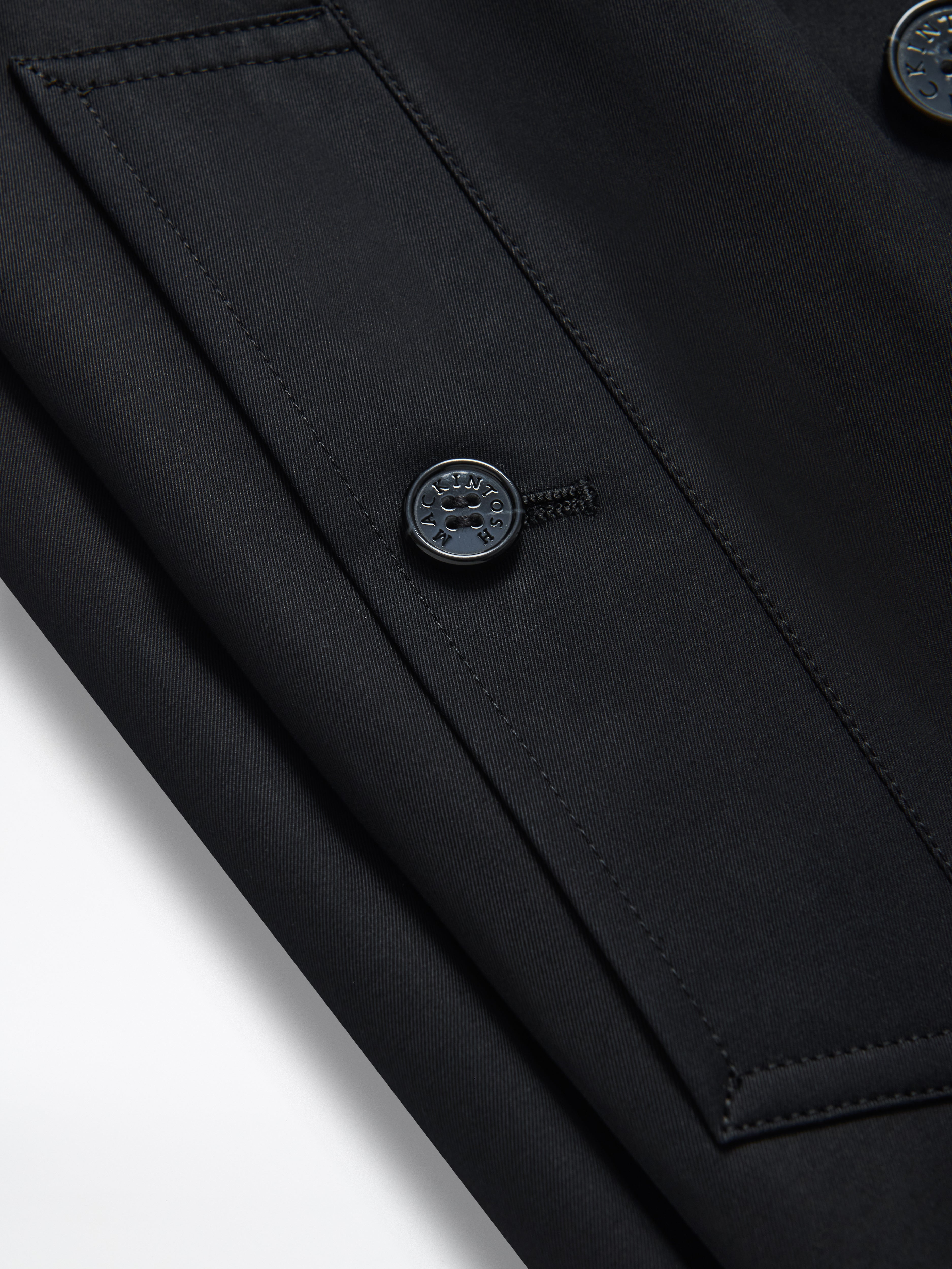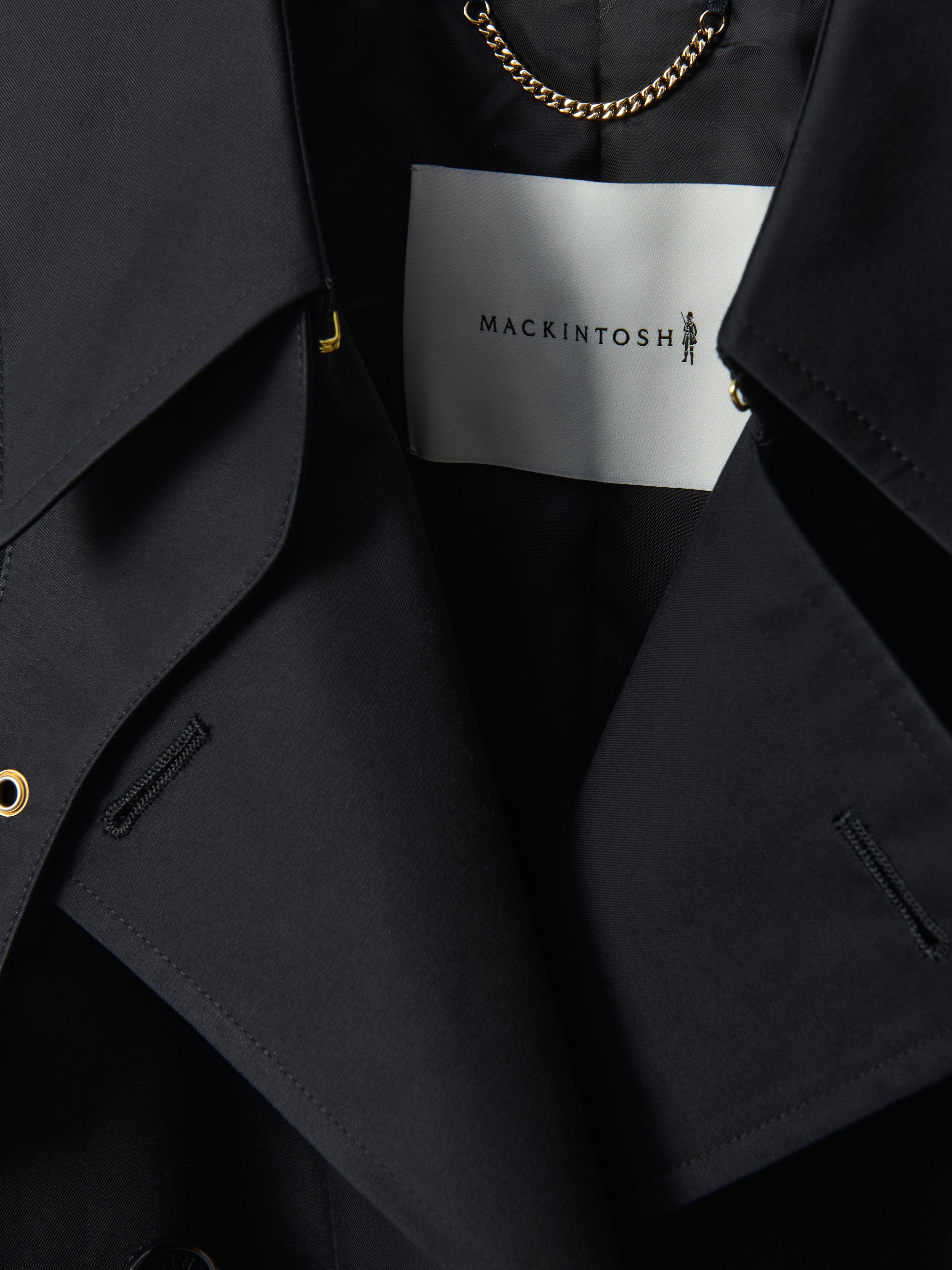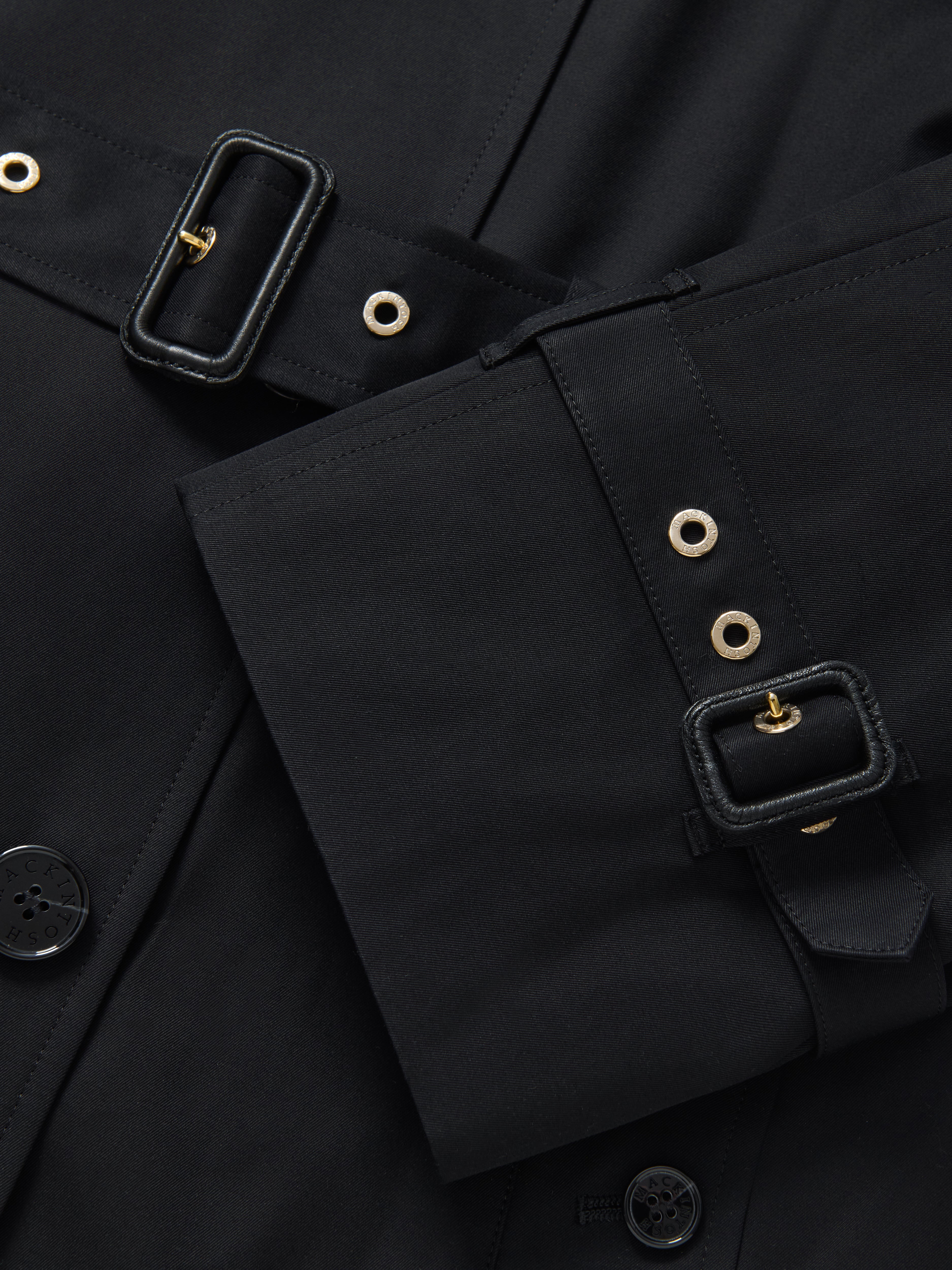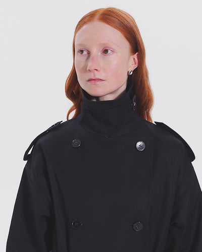 This classic trench coat offers a modern voluminous shape and fashionable feel. The fabric is fashioned from a densely woven, yet fine, Supima cotton and is characterised by its beautiful drape and deep shading.