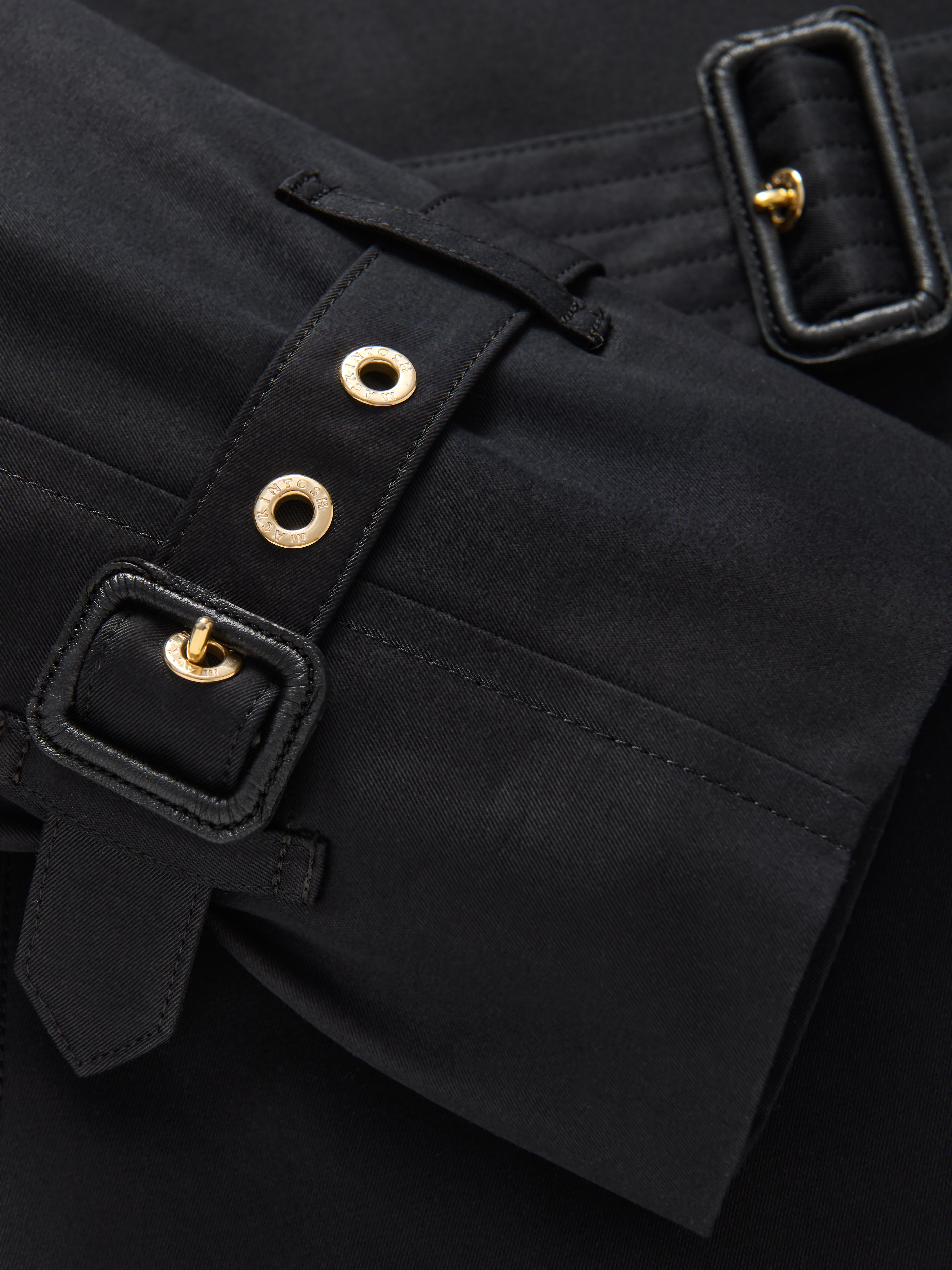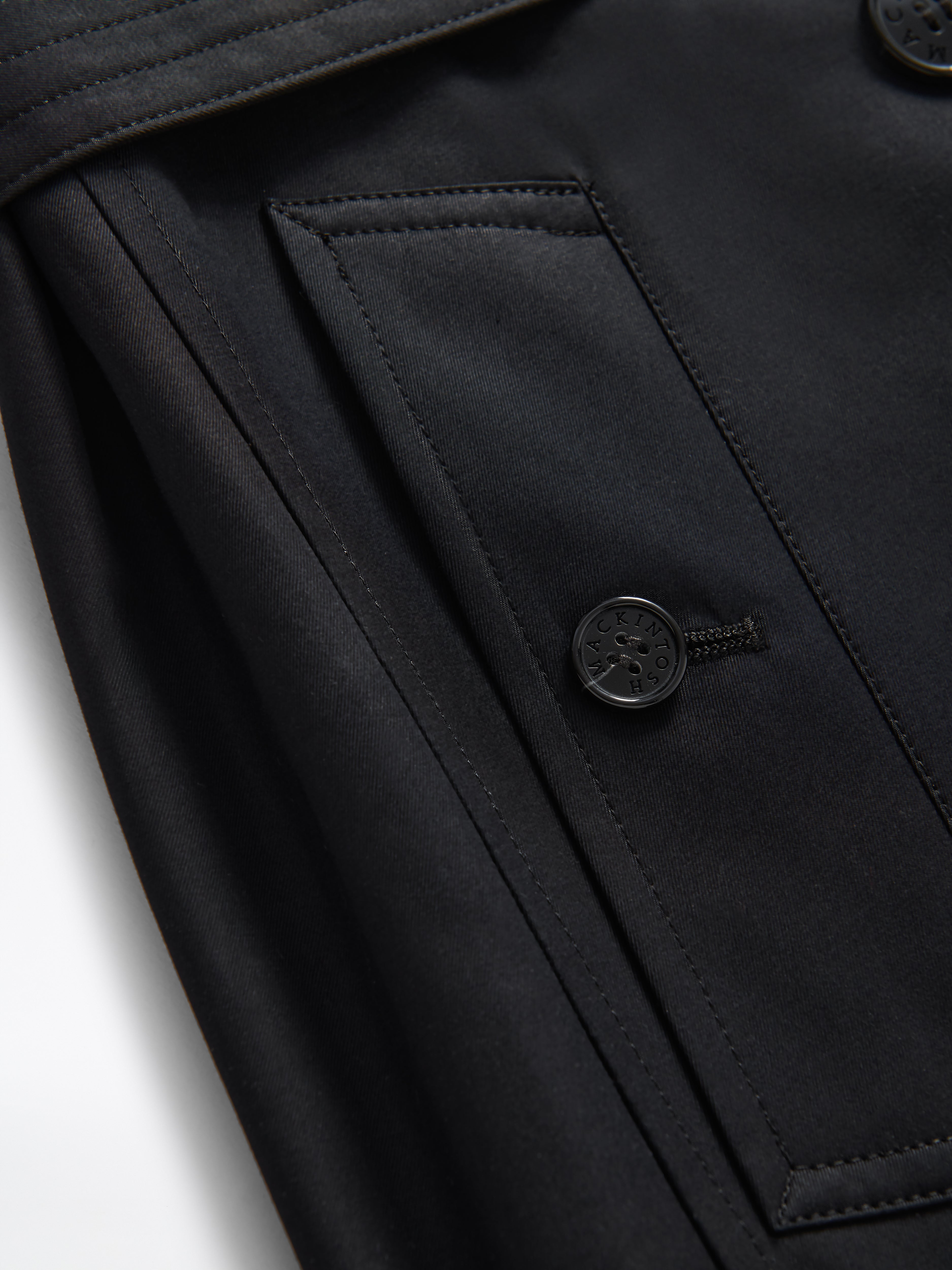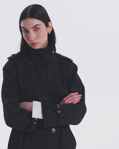 This classic trench coat has authentic tailoring with attention to detail such as epaulettes, gun patches, and inverted pleats, and a beautiful silhouette from the waist to the hem that gives a feminine and elegant impression.