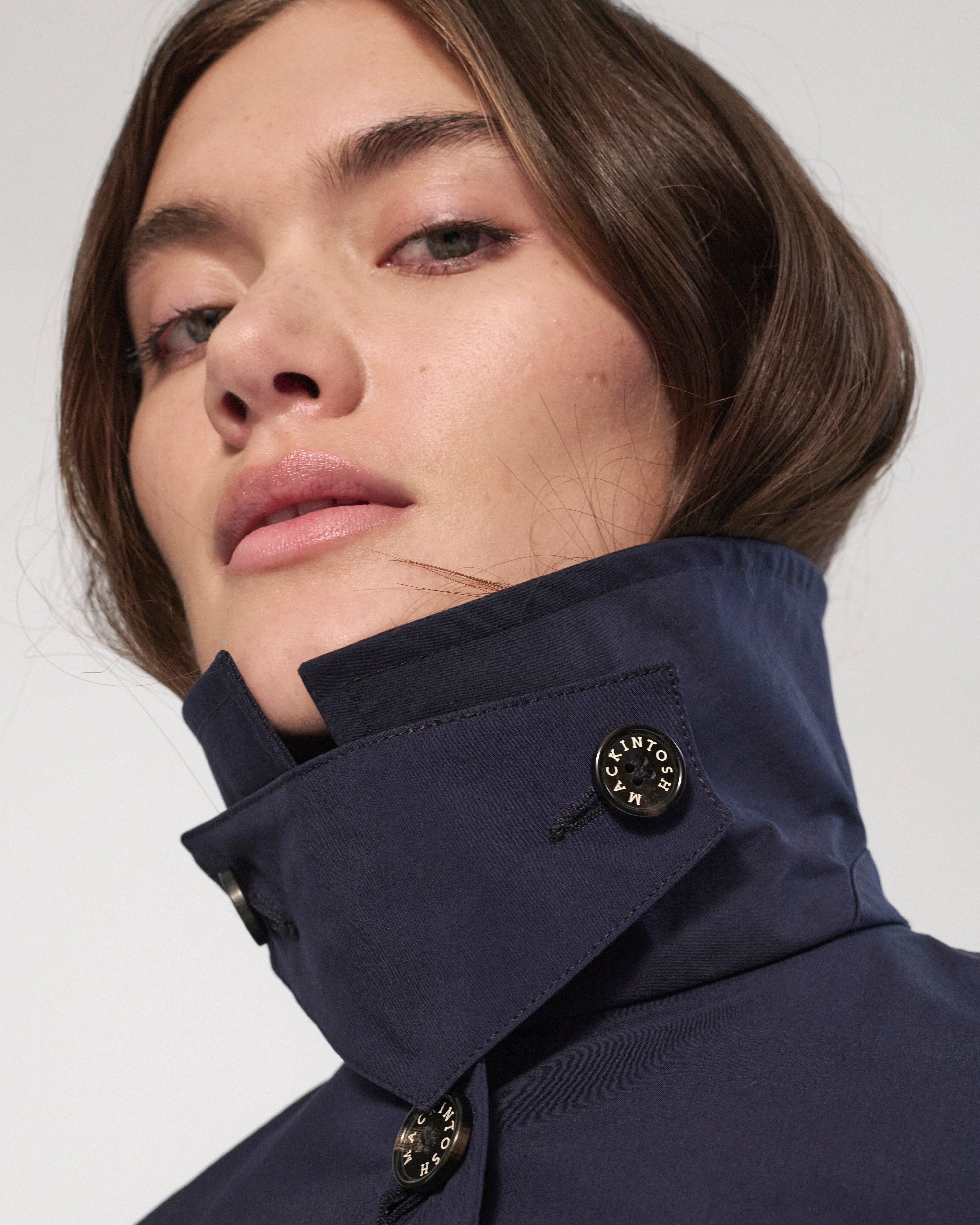 This version of the Humbie coat, comes in a shorter style shape, offering a flatteringly flared A-line shape, with an off-shoulder stainless steel collar. Made from 60% recycled materials, the fabric is highly water-repellent whilst remaining lightweight for everyday wear.