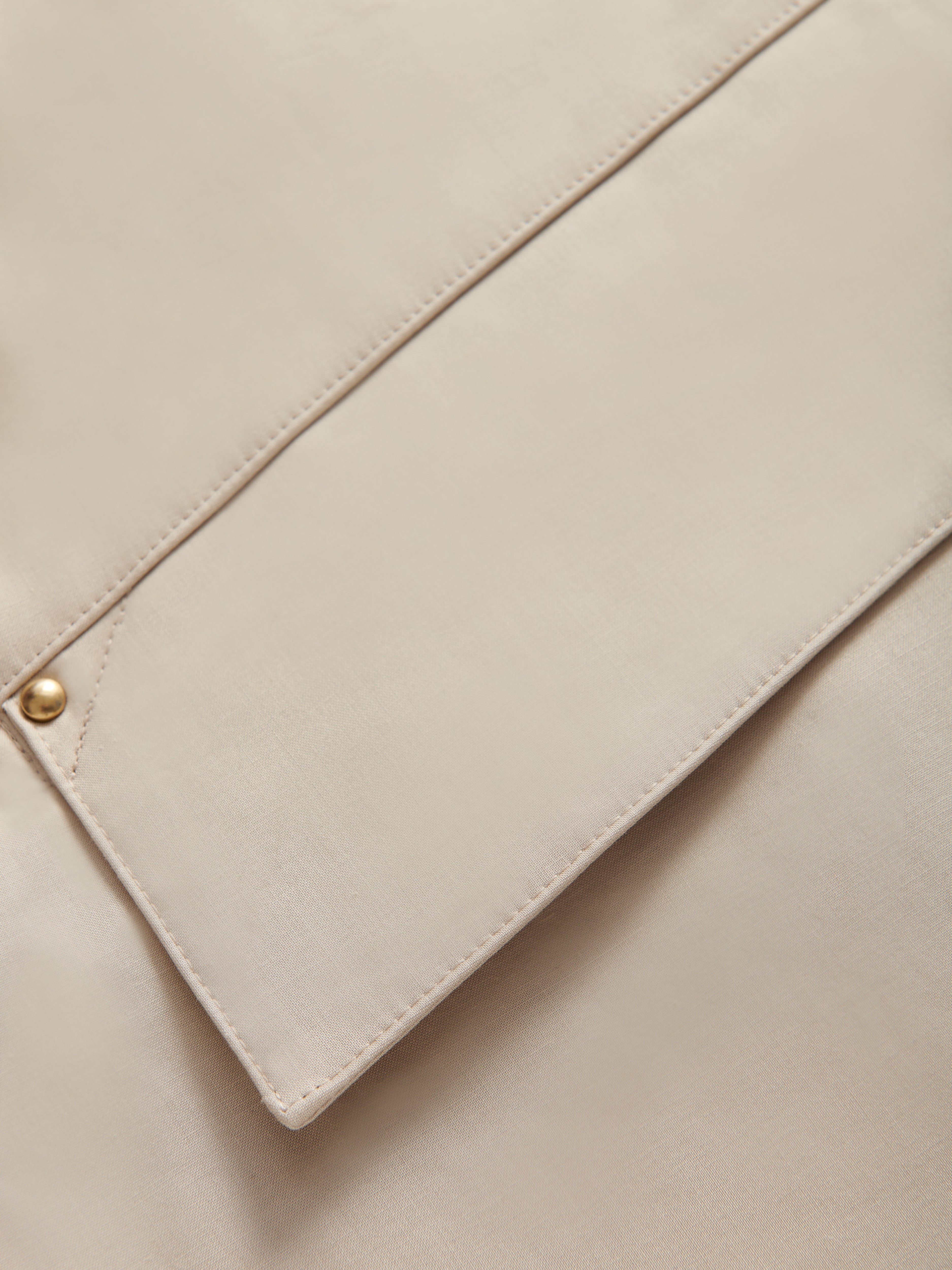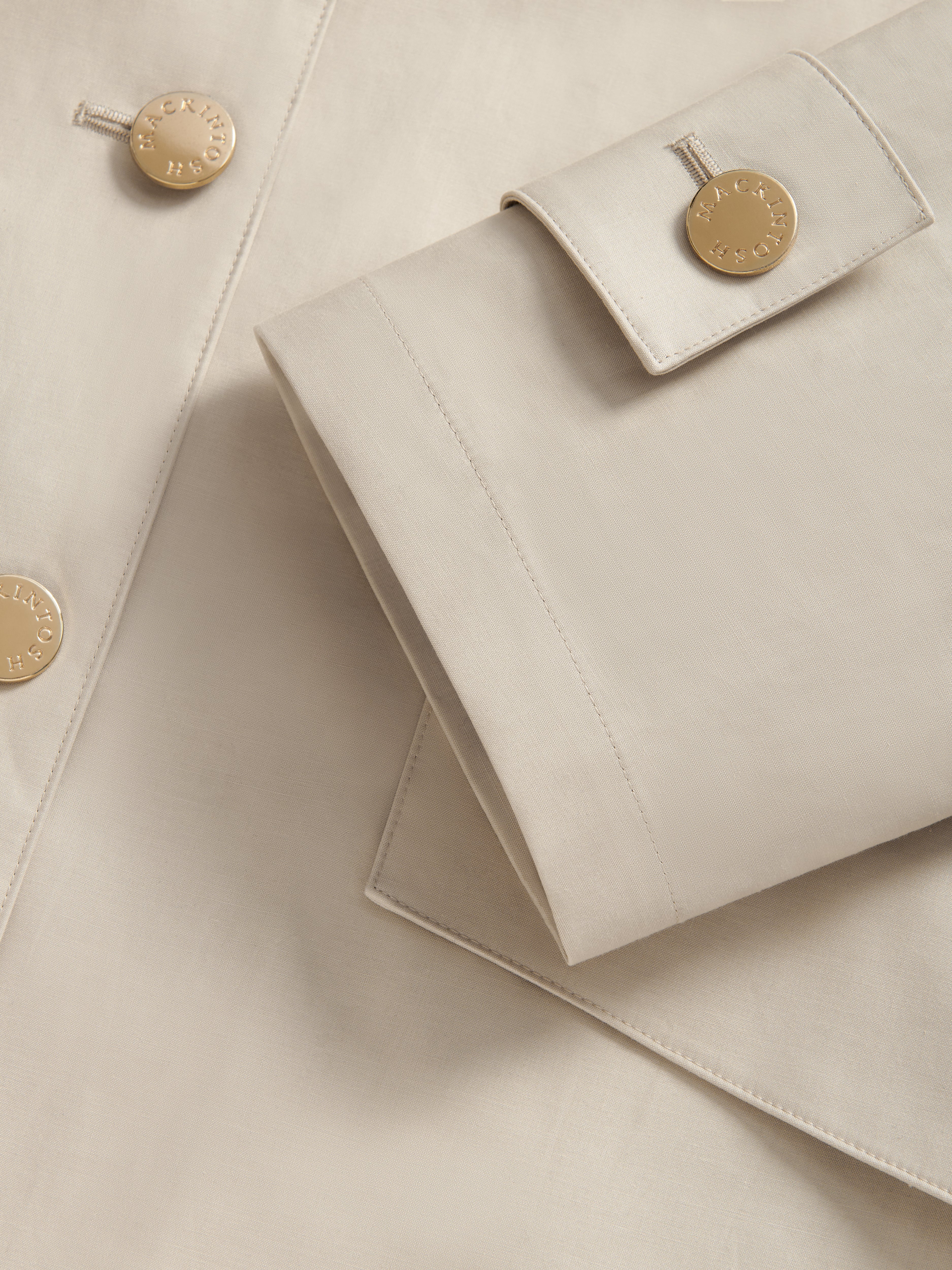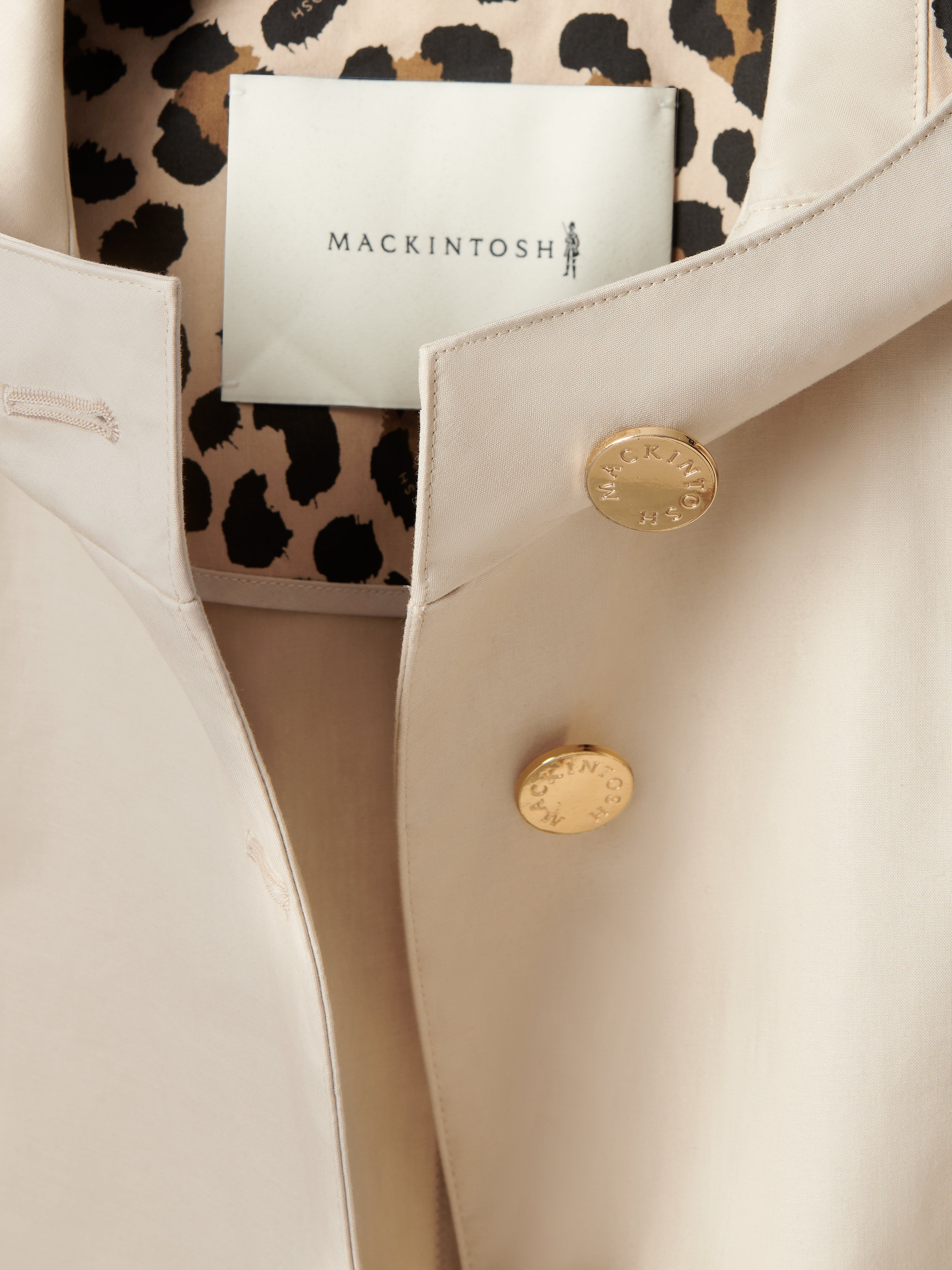 This version of the Humbie coat offers a silhouette that suits all styles and occasions. The drop shoulder short coat stands out in the style stakes with its beautiful gold buttons and leopard-print hood lining whilst also offering a breathable and waterproof material for those inevitable rainy days.