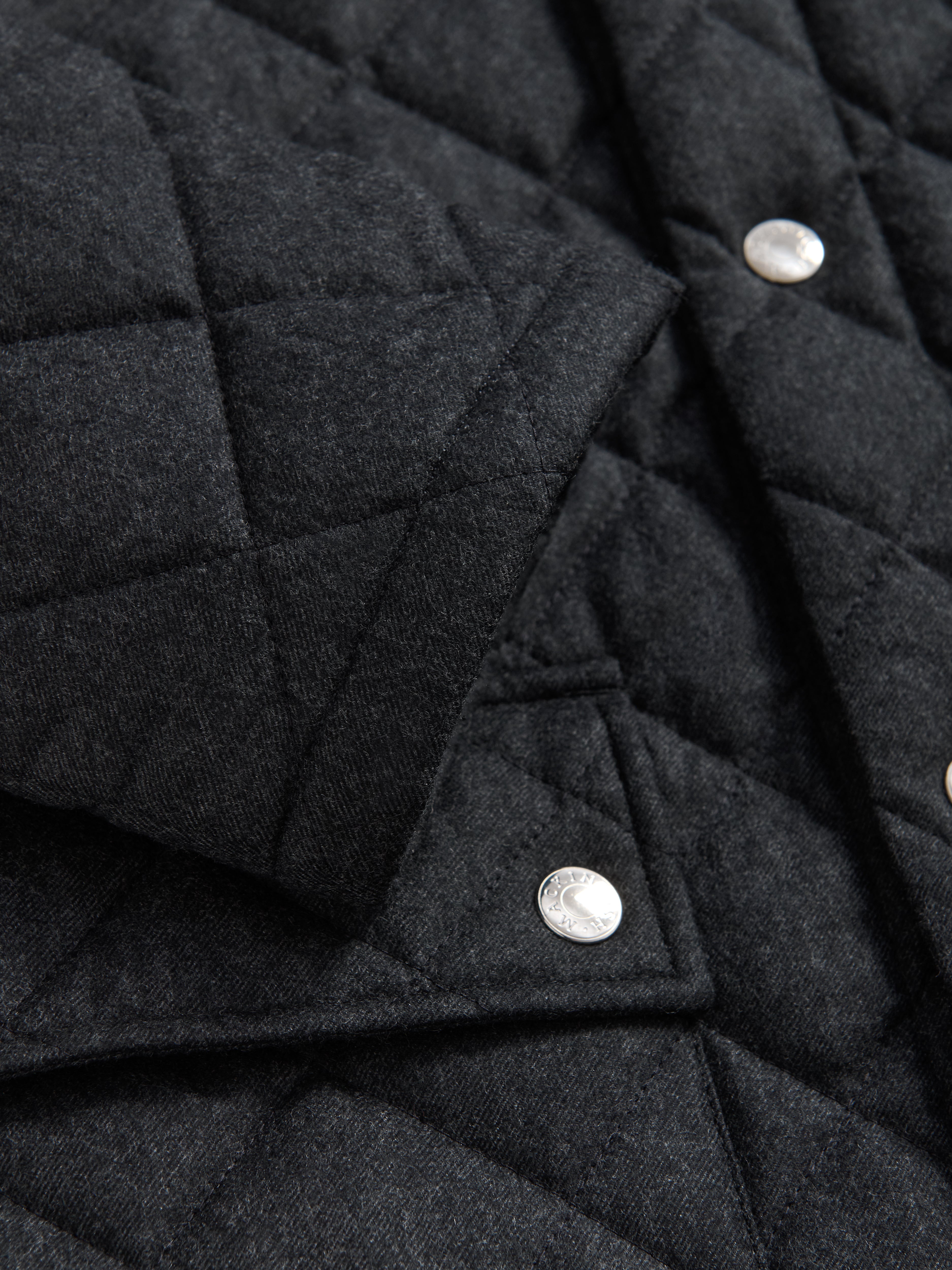 A versatile quilted jacket with Flap pockets, stand collar & button down placket detailing.