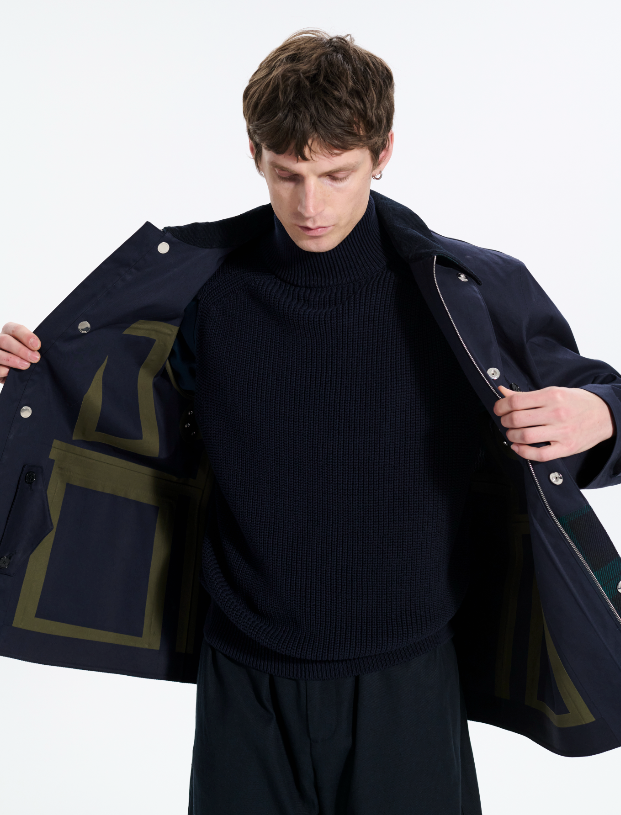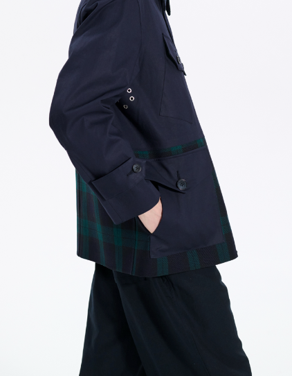 The Jedburgh is a modern update of the Canadian Army MK-2 field jacket. Details such as epaulettes, cuffs, and hem spindles have been removed to create a minimalist design. This piece strikes an exquisite balance between its authentic design and a contemporary mood, achieved by combining different materials.