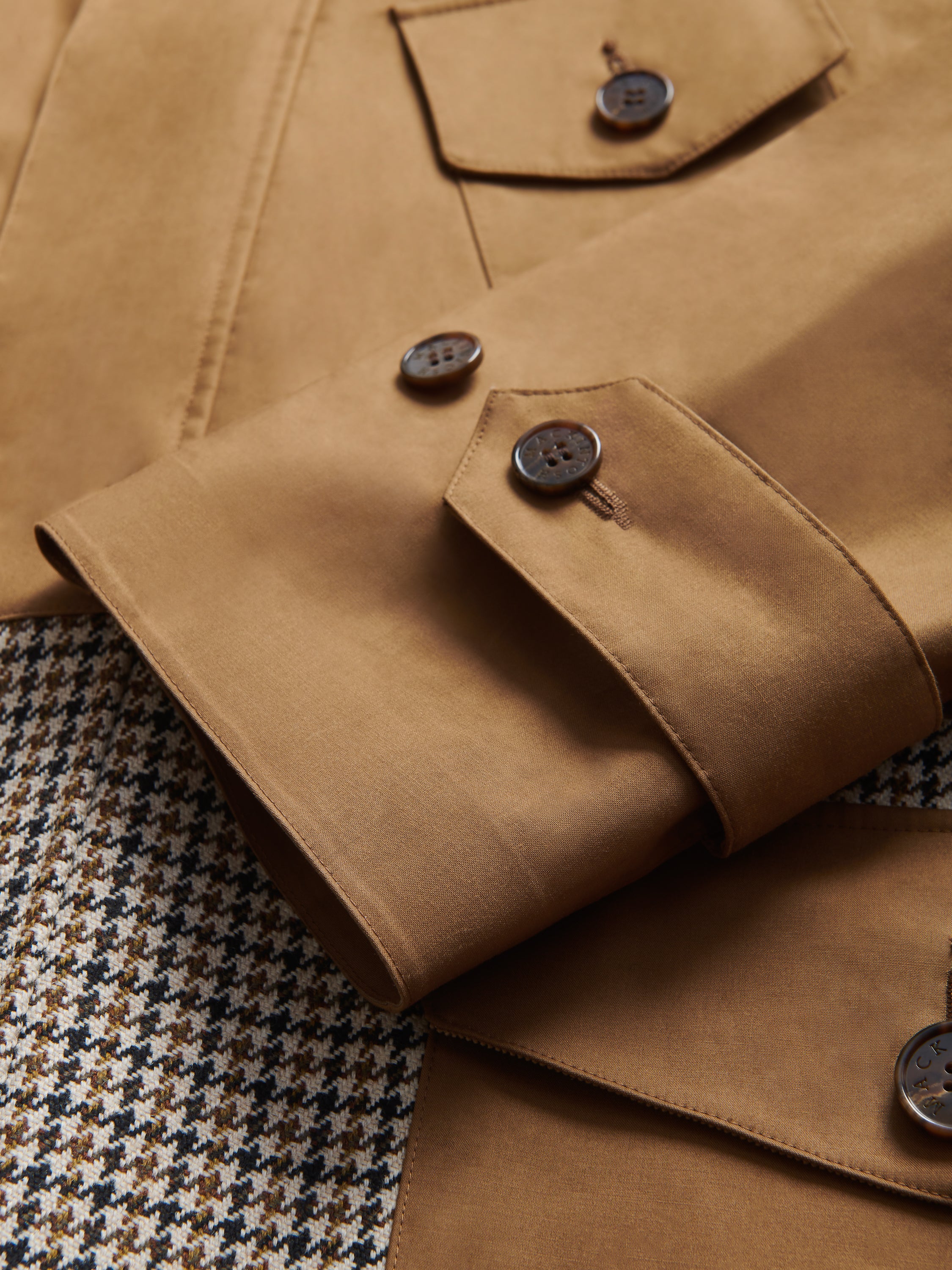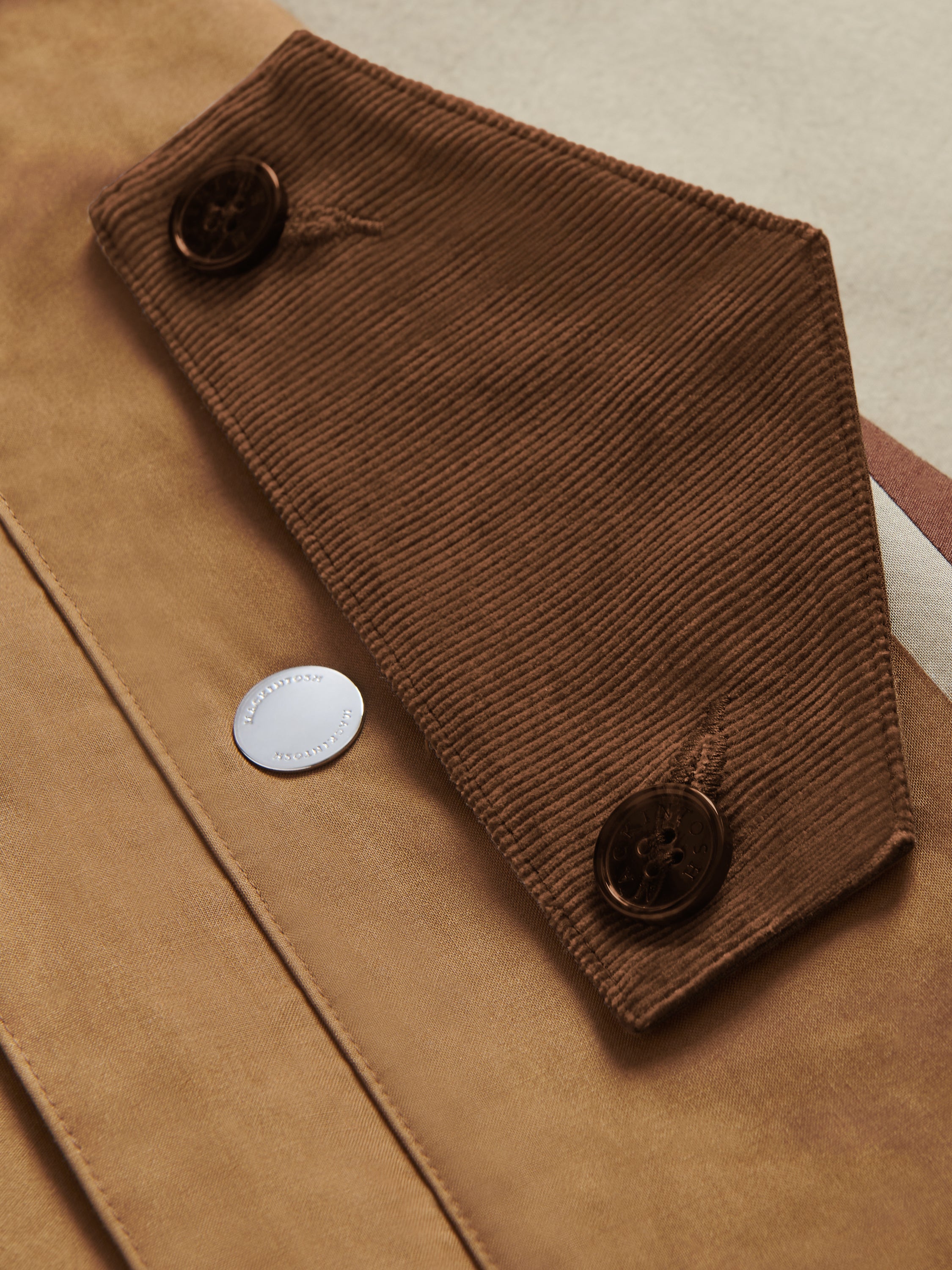 The Jedburgh is a modern update of the Canadian Army MK-2 field jacket. Details such as epaulettes, cuffs, and hem spindles have been removed to create a minimalist design. This piece strikes an exquisite balance between its authentic design and a contemporary mood, achieved by combining different materials.
