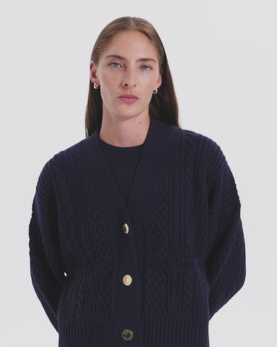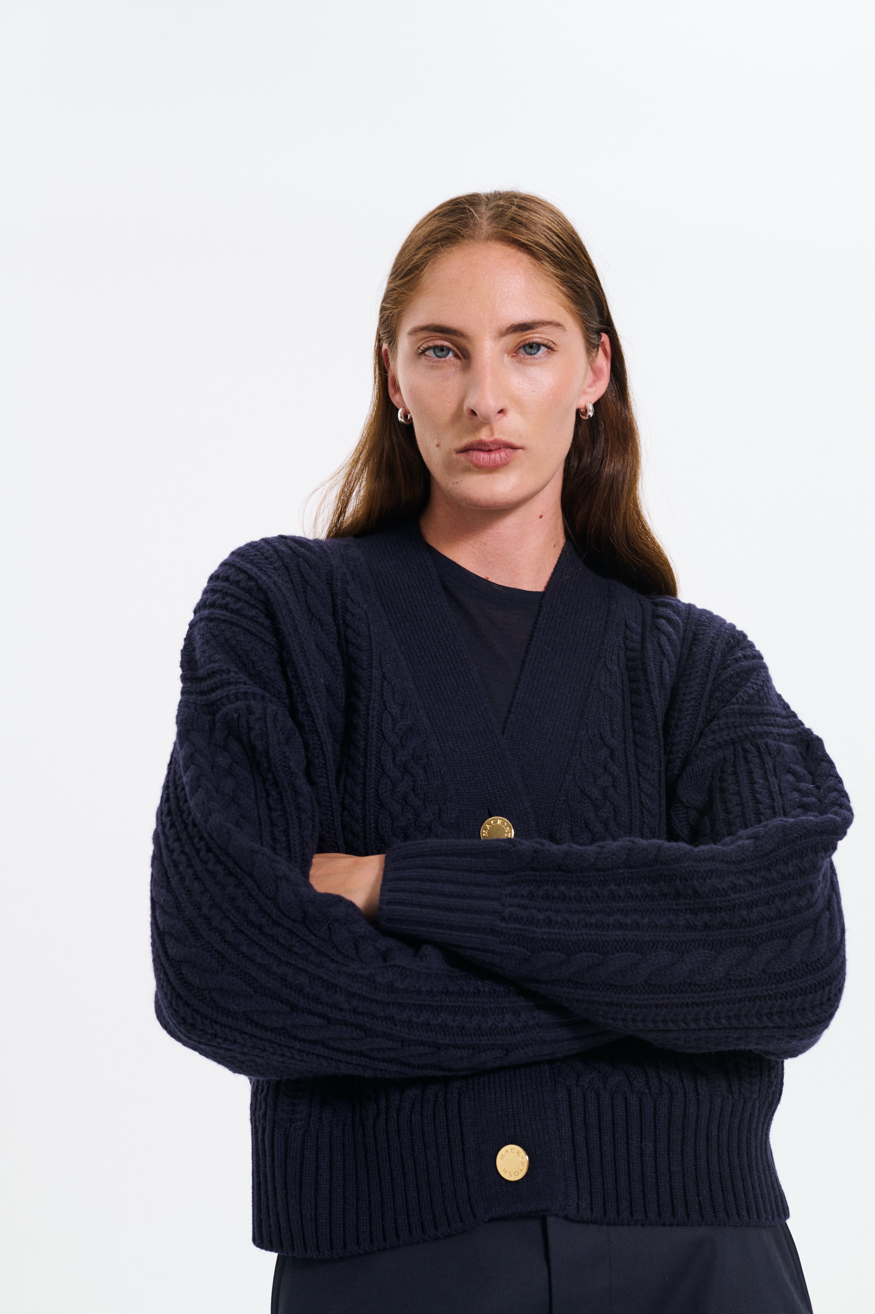 The Cable Cardigan is crafted by BATONER in a wonderful blend of 80% wool and 20% Alpaca.
