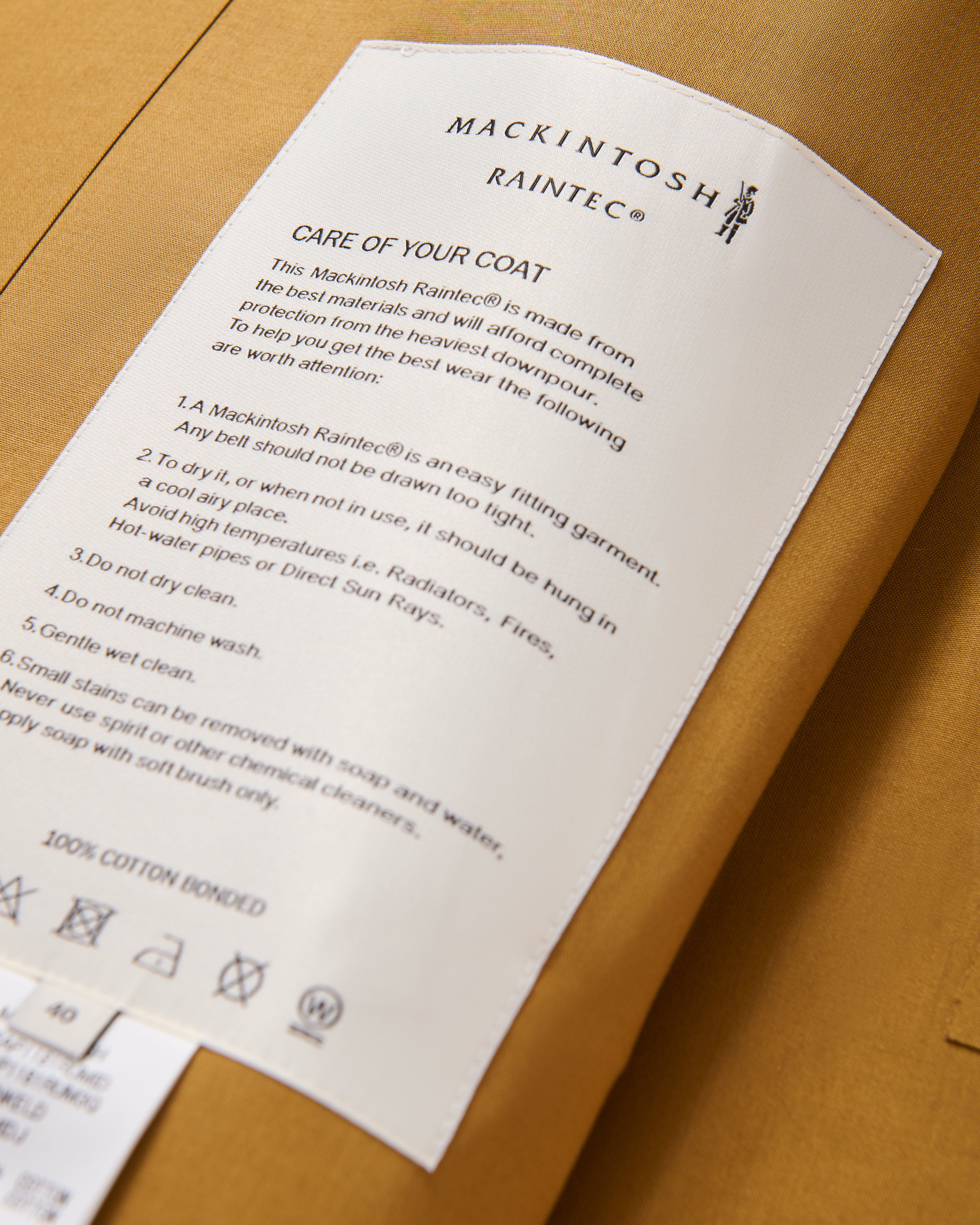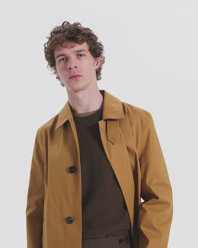 The Dunoon Raintec Single-Breasted Rain Coat is a thigh-length coat inspired by classic Mackintosh Coats from the archive. It features a sophisticated collar shape, three-dimensional pattern with minimalist design and silhouette. Slit pockets and front placket hide the buttons, keeping the design sleek, while the Raintec shell and taped seams keep the rain out and gives excellent breathability in between sun and rain showers.