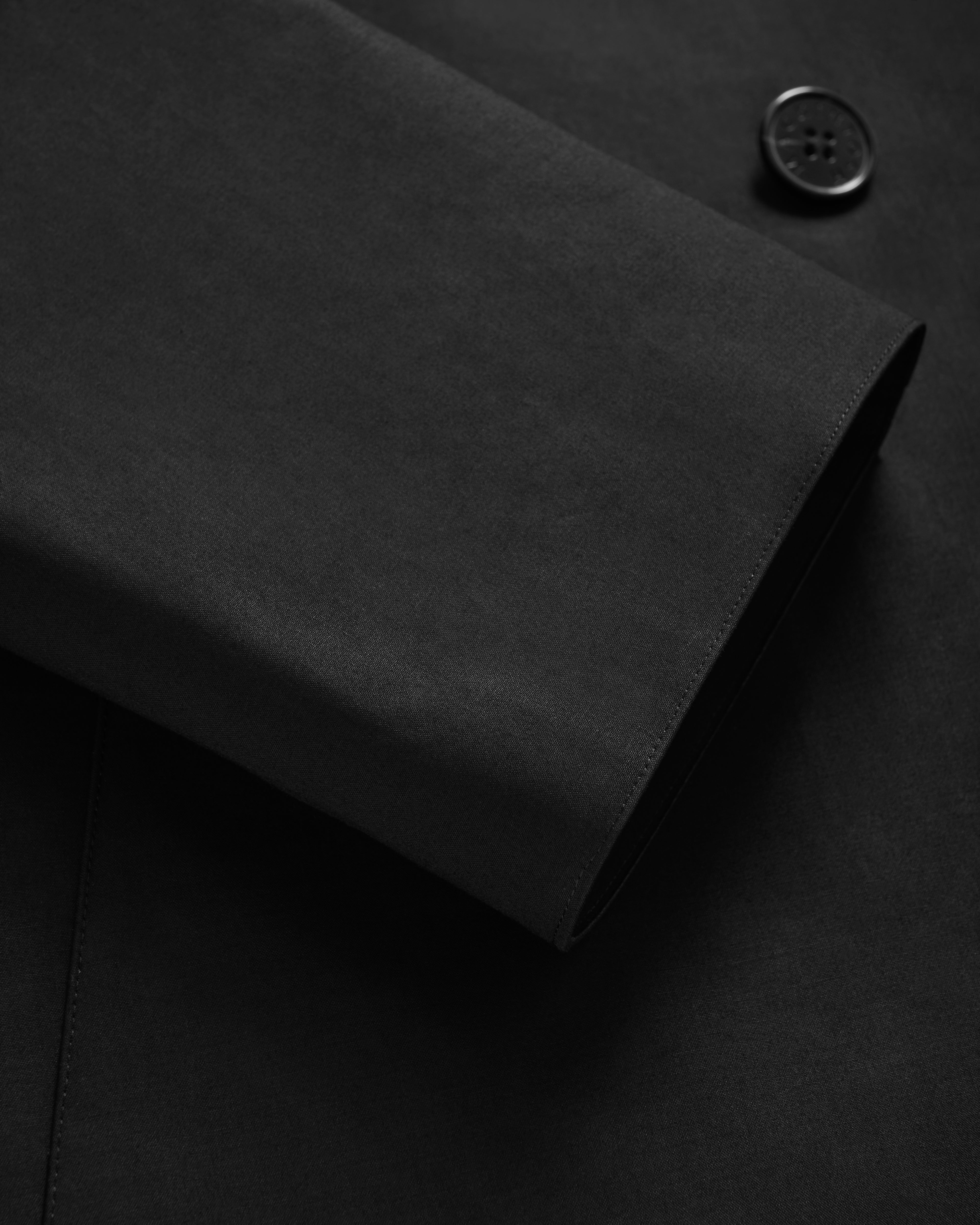 The Dunoon Raintec Single-Breasted Rain Coat is a thigh-length coat inspired by classic Mackintosh Coats from the archive. It features a sophisticated collar shape, three-dimensional pattern with minimalist design and silhouette. Slit pockets and front placket hide the buttons, keeping the design sleek, while the Raintec shell and taped seams keep the rain out and gives excellent breathability in between sun and rain showers.