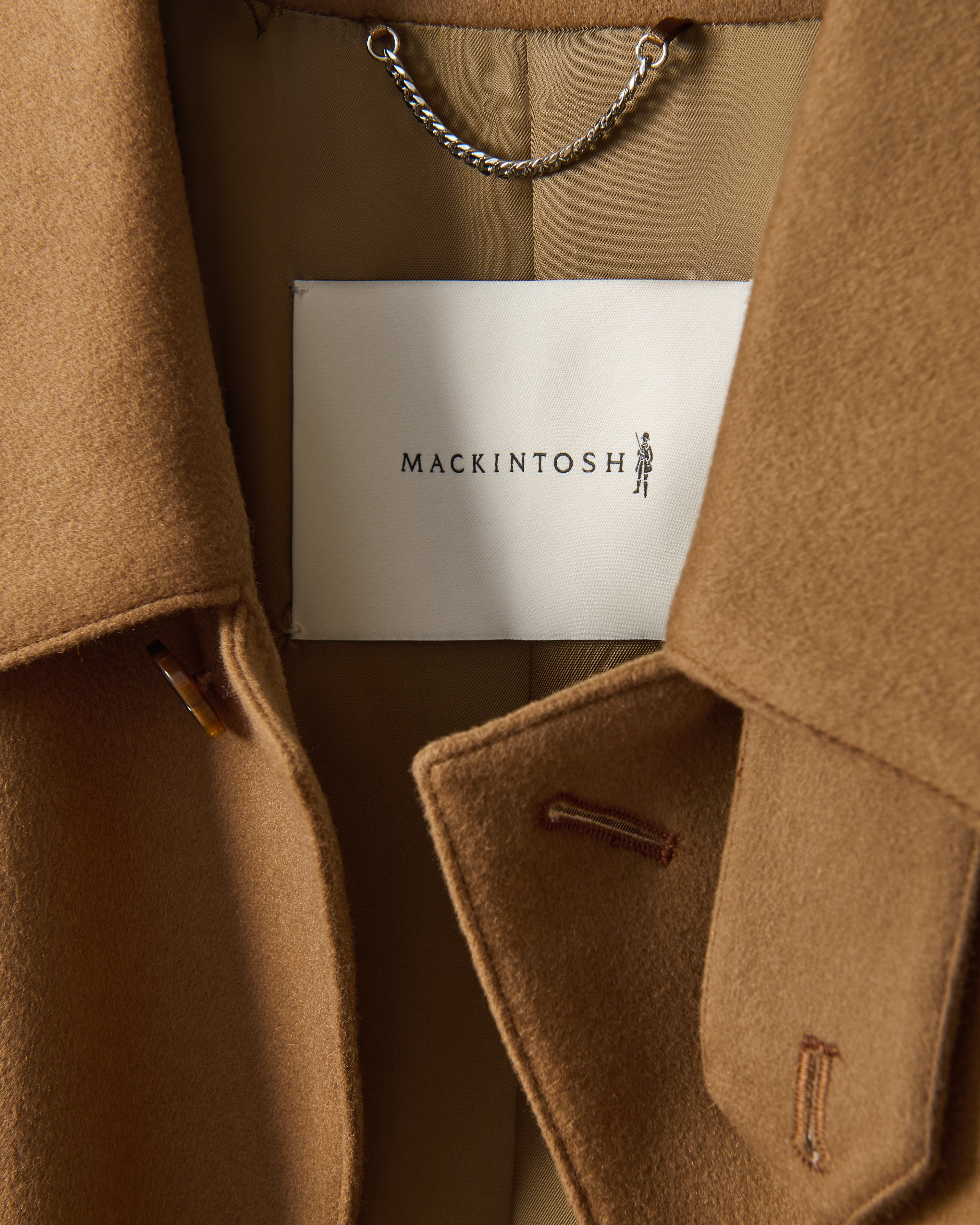 Our signature Dunkeld Coat in Camel, Loro Piana Rain System wool.