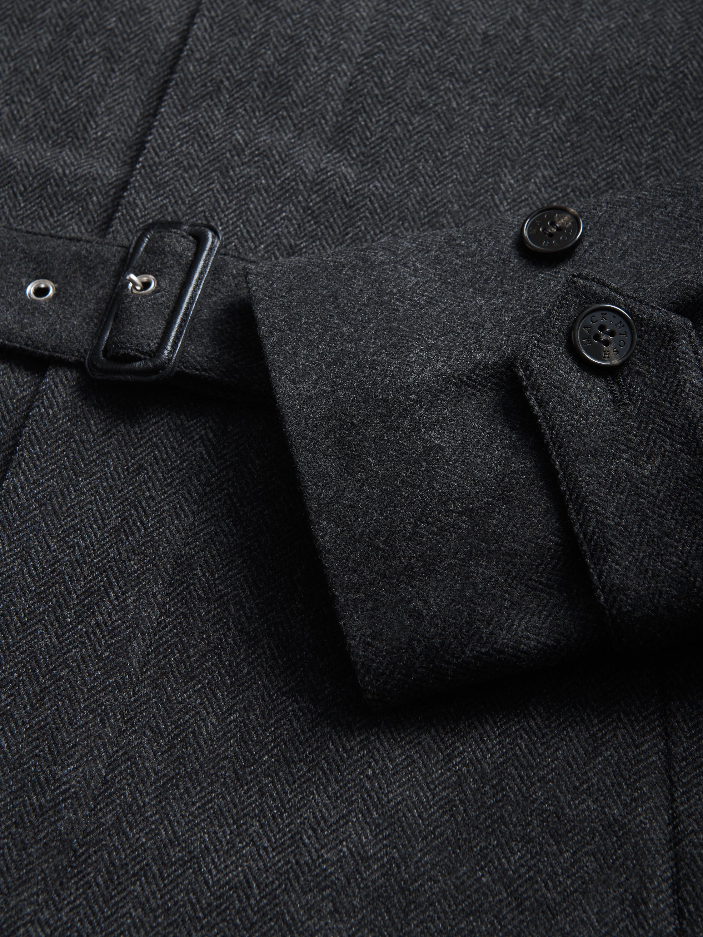 Made from Loro Piana Rain System® Herringbone Tweed, a refined and elegant water-repellent fabric from Loro Piana, crafted from premium cashmere and Sopra Visso wool. The material stands out for its exceptional smoothness and lightness. Note: Sopra Visso wool is a fibre derived from the Sopravissana sheep, an ancient native breed raised in the town of Visso in central Italy.
