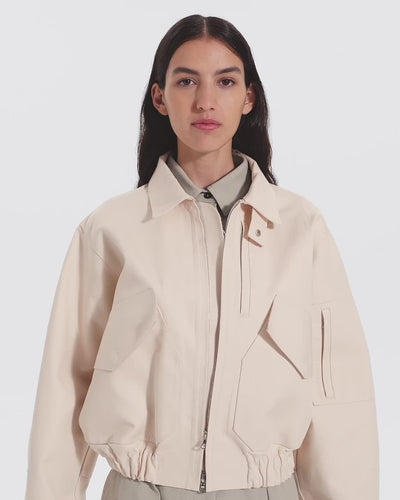 The Victoria Beckham x Mackintosh Bomber Jacket honours the enduring legacy of British outerwear, reinterpreting the classic flight jacket silhouette with modern elegance. Presented in refined shades of Putty and Pale-Rose, each piece is meticulously handmade and fully waterproof, reflecting Mackintosh’s time-honoured expertise. Crafted from 100% bonded cotton and finished with a flattering cropped hemline, it is a timeless investment piece, rooted in craftsmanship and made for a life well worn.