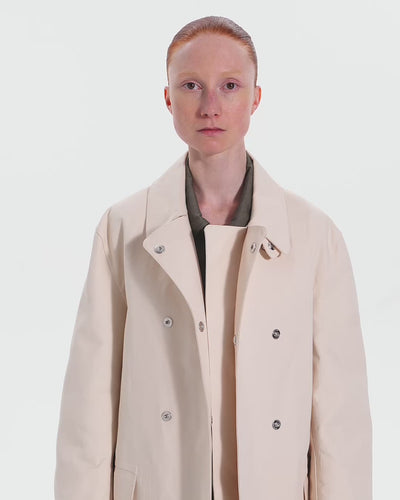 The Victoria Beckham x Mackintosh Caban Coat reflects a proud heritage of British outerwear, uniting heritage with refined design. Expertly hand-crafted from waterproof bonded cotton, it features a classic collared neckline and a versatile mid-length silhouette. Presented in Putty this timeless coat is elevated through modern sophistication, offering enduring style rooted in craftsmanship.