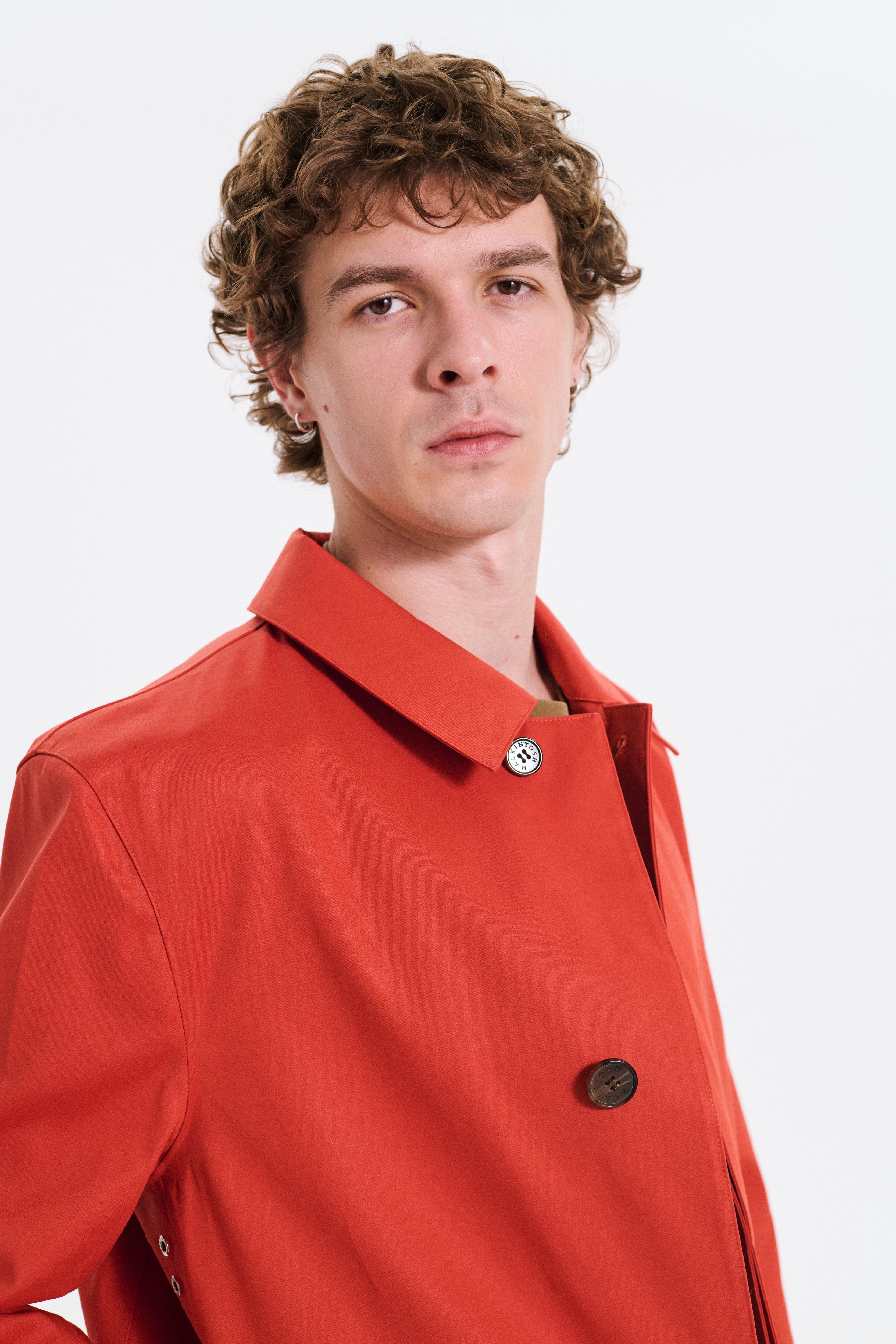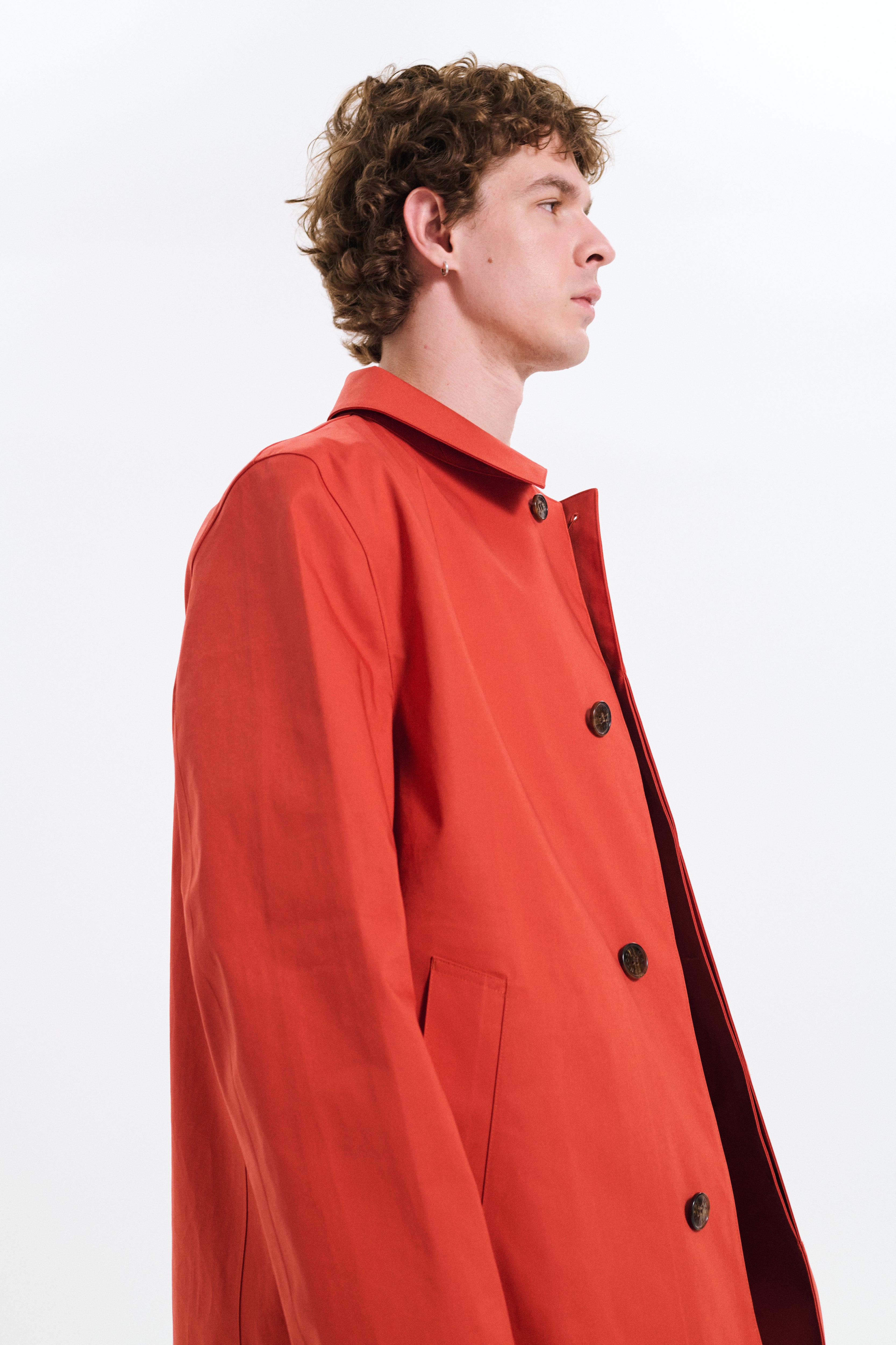 The Dunoon Raintec Single-Breasted Rain Coat is a thigh-length coat inspired by classic Mackintosh Coats from the archive. It features a sophisticated collar shape, three-dimensional pattern with minimalist design and silhouette. Slit pockets and front placket hide the buttons, keeping the design sleek, while the Raintec shell and taped seams keep the rain out and gives excellent breathability in between sun and rain showers.