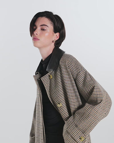 The Belted Bowland is an oversized, belted stand-fall collar coat. This piece blends an authentic design with a voluminous A-line silhouette and maxi length. The supple lamb leather on the collar and waist belt adds a luxurious touch. The leather collar is detachable, and the waist belt is reversible.
