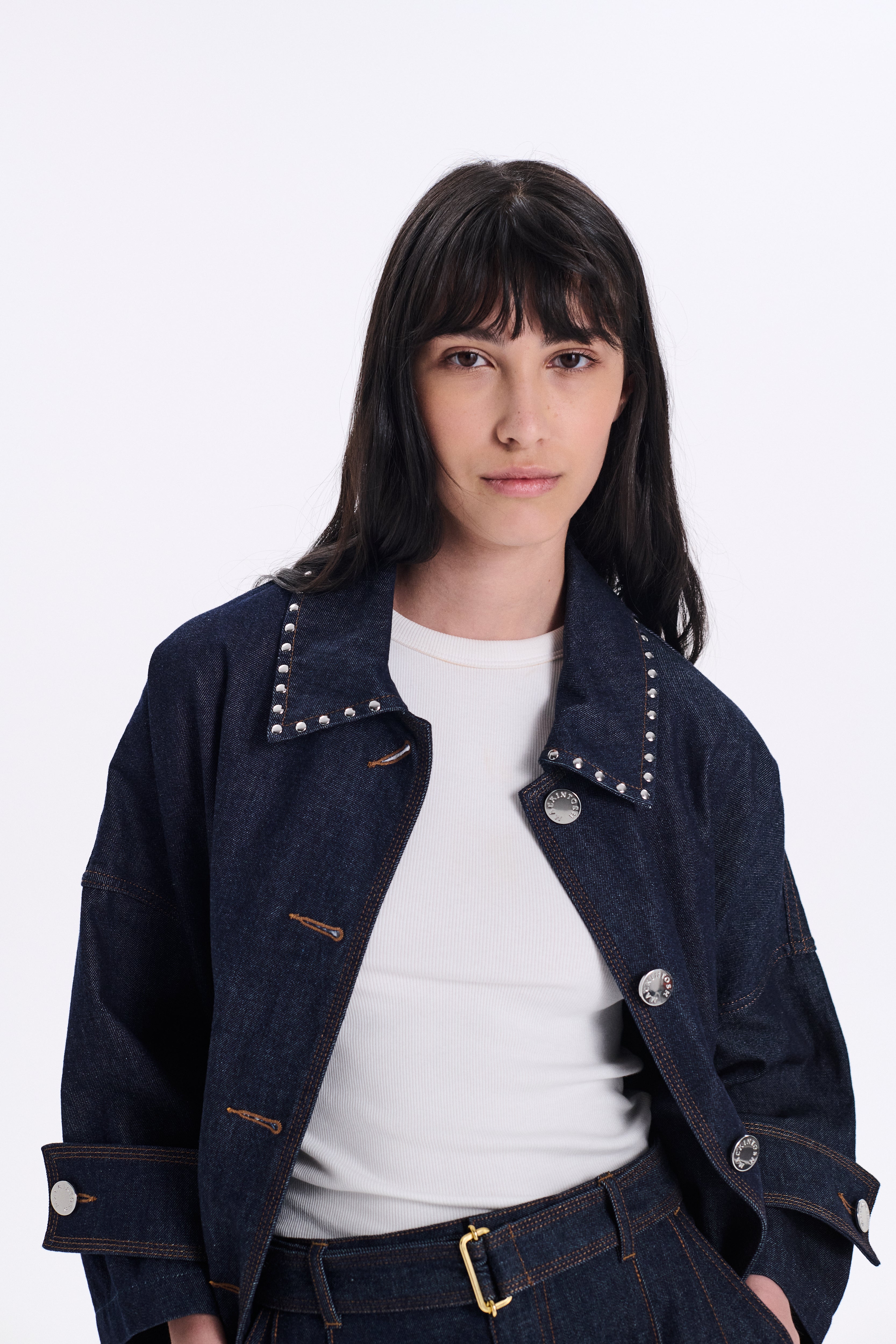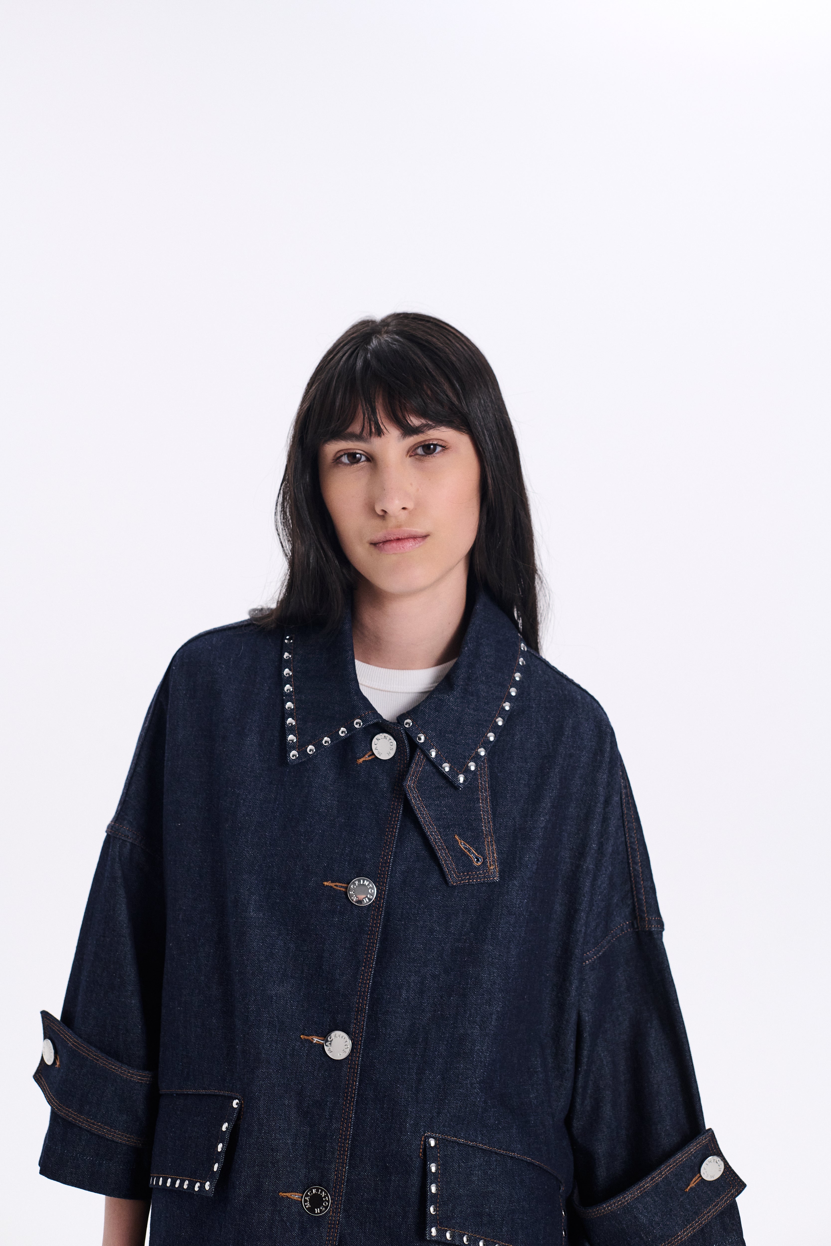 Humbie Cropped Sleeve Studded Denim Jacket