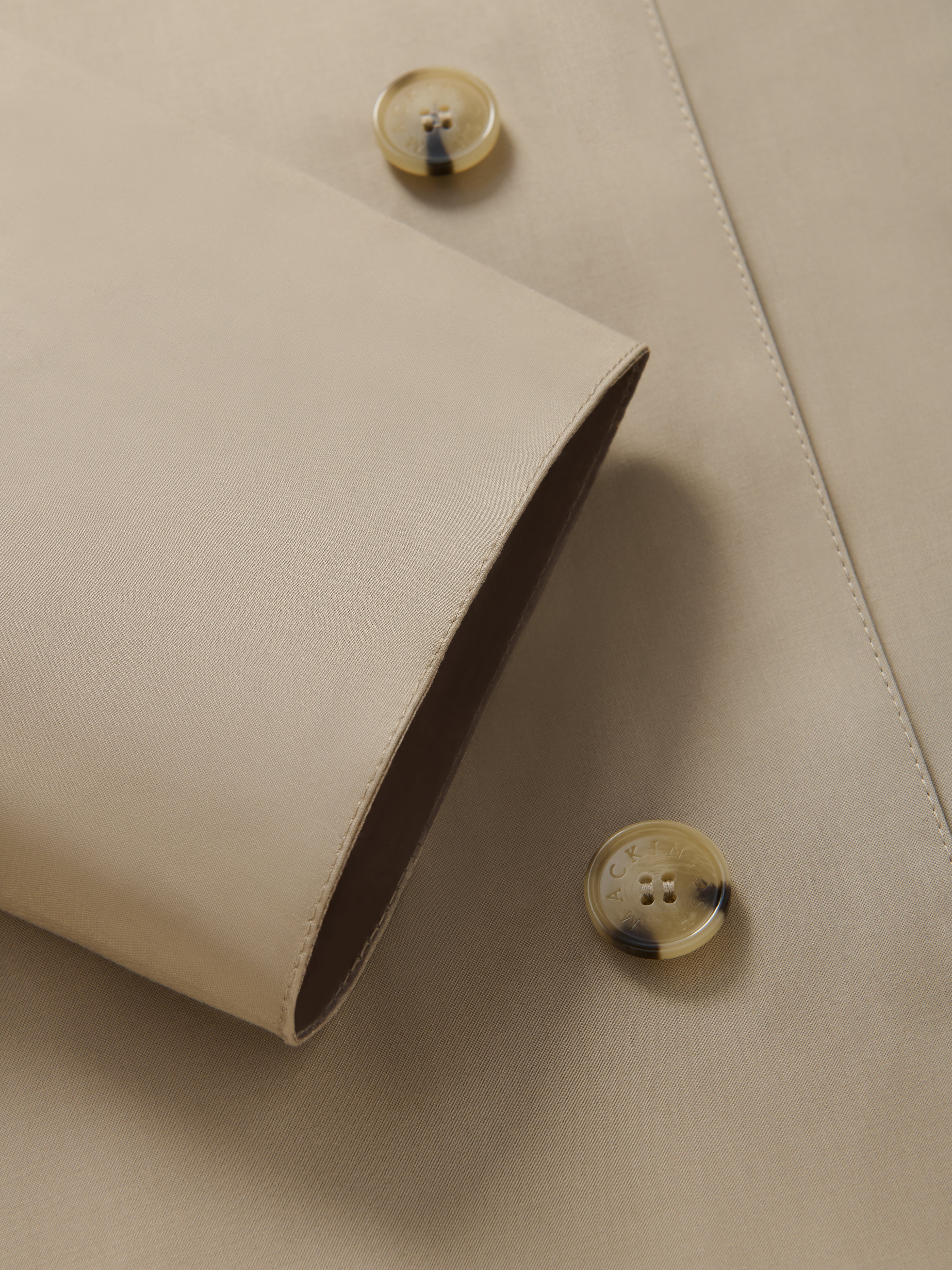 MACKINTOSHの定番「Dunkeld」コートよりもわずかに短い、太もも丈でデザインされた「Dunoon」。19世紀に開発され、長年にわたり磨き上げられた製法を用いて、スコットランドで熟練の職人による手作業で仕立てられています。そこには、比類のない精度と細部へのこだわりが込められています。