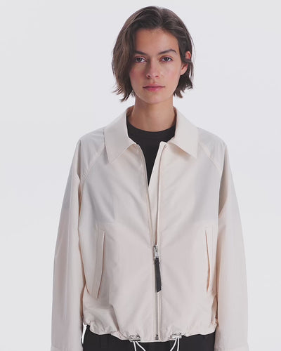This piece strikes a modern balance between its cropped length and voluminous body. Its elegant raglan zip-up blouson design boasts a beautiful silhouette and versatile coordination, allowing you to enjoy a wide range of styling options by blousing the waist. The leather zipper pull also serves as an accent.