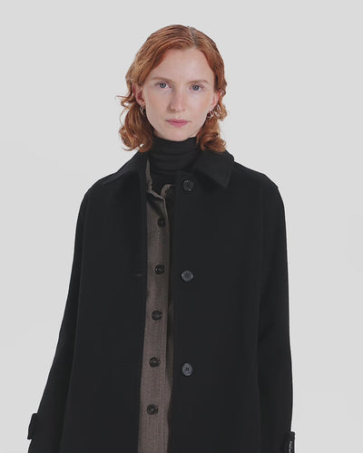 Mackintosh's ladies signature model, the Banton, is a timeless coat with a beautifully gentle A-line silhouette that remains unaffected by trends. Crafted from soft-textured light melton fabric, this winter staple is accentuated by striking buttons.
