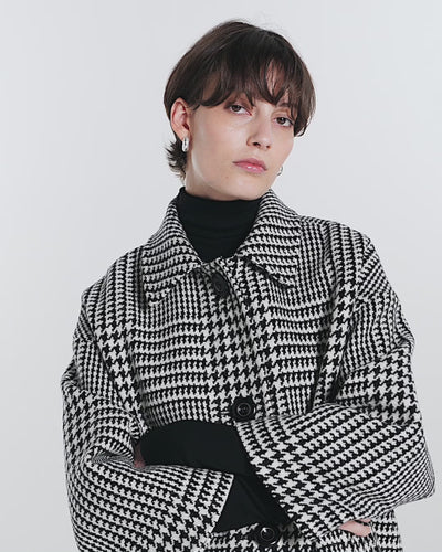 The Collin is an overcoat that offers a classical impression with its wide sleeves and cocoon silhouette. This piece features a minimalist design, accented by voluminous and elegant buttons that truly stand out.