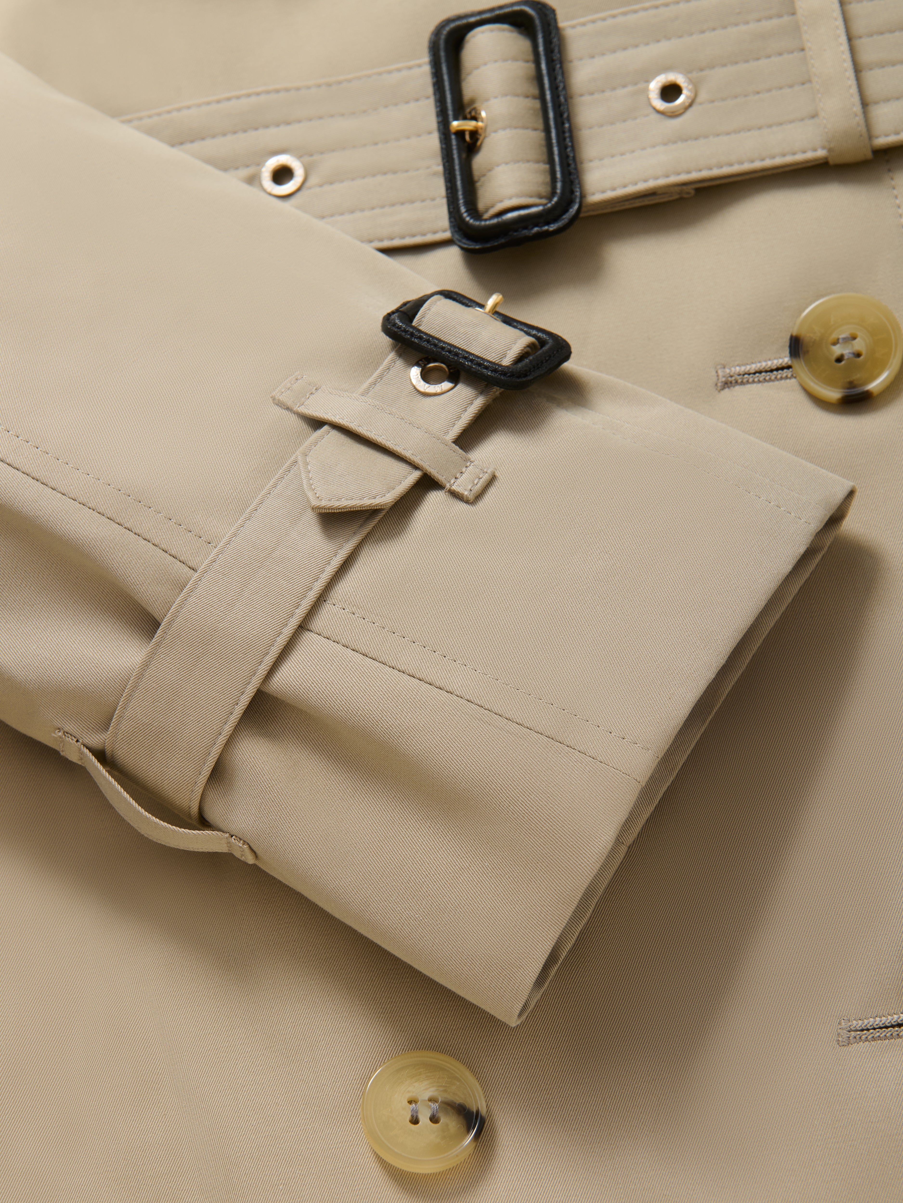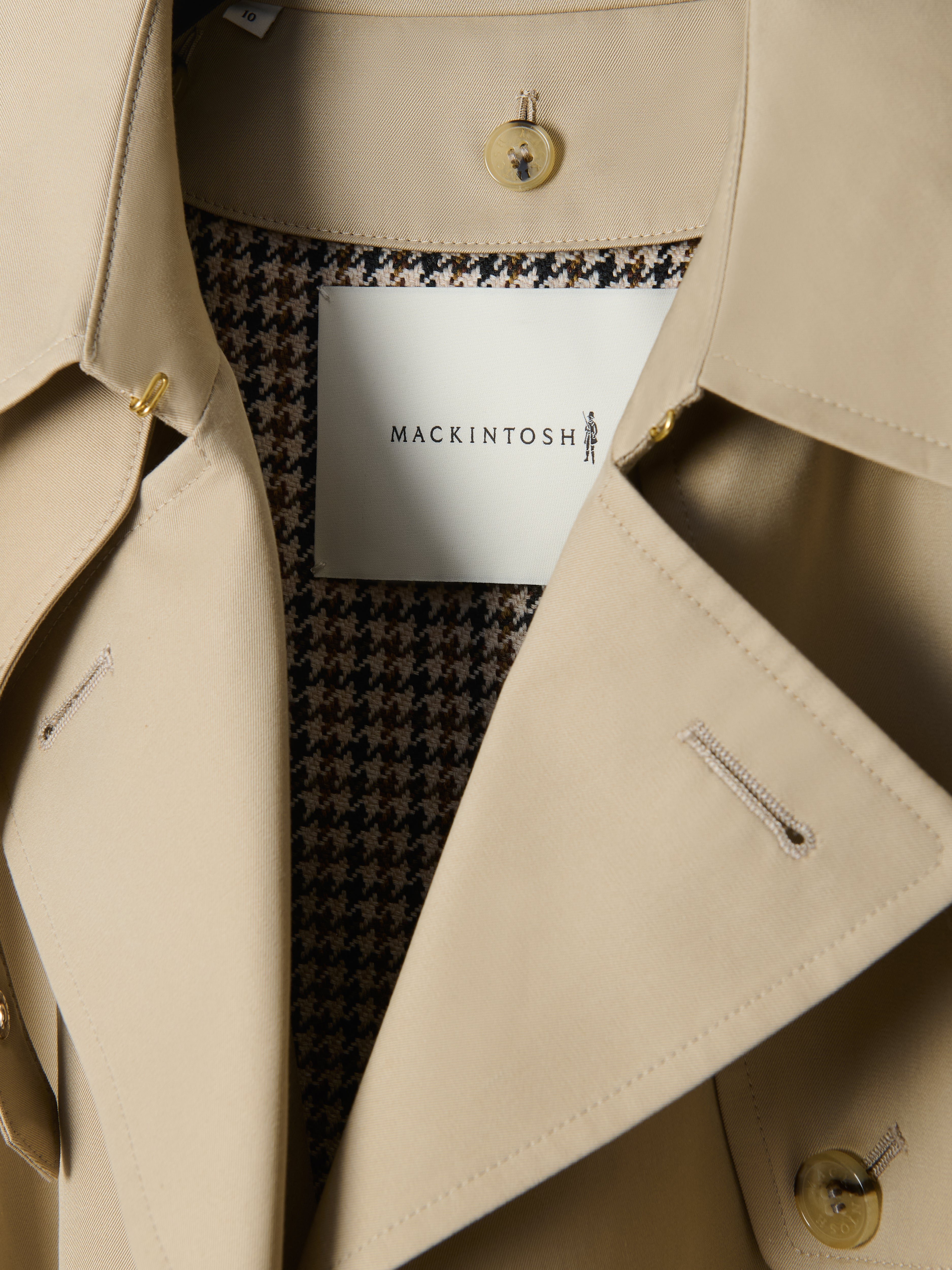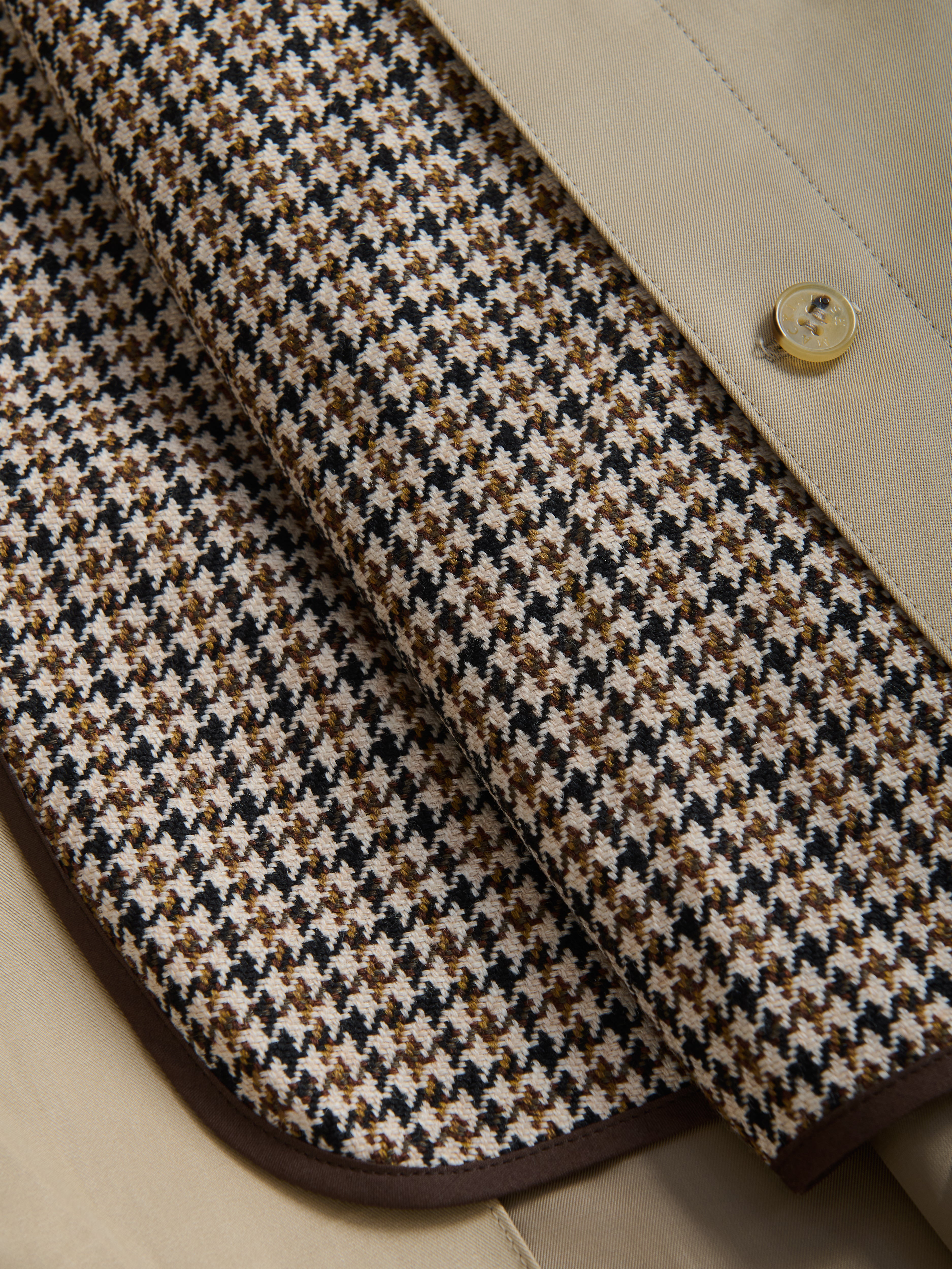 エポレットやガンパッチ、インバーテッドプリーツなど細部にまでこだわった本格的な仕立てと、ウエストから裾にかけての美しいシルエットが女性らしく上品な印象を与える定番トレンチコート。英国風の千鳥格子柄をあしらった柔らかなツイード素材の取り外し可能なライナーが付属し、オールシーズン着用いただけます。