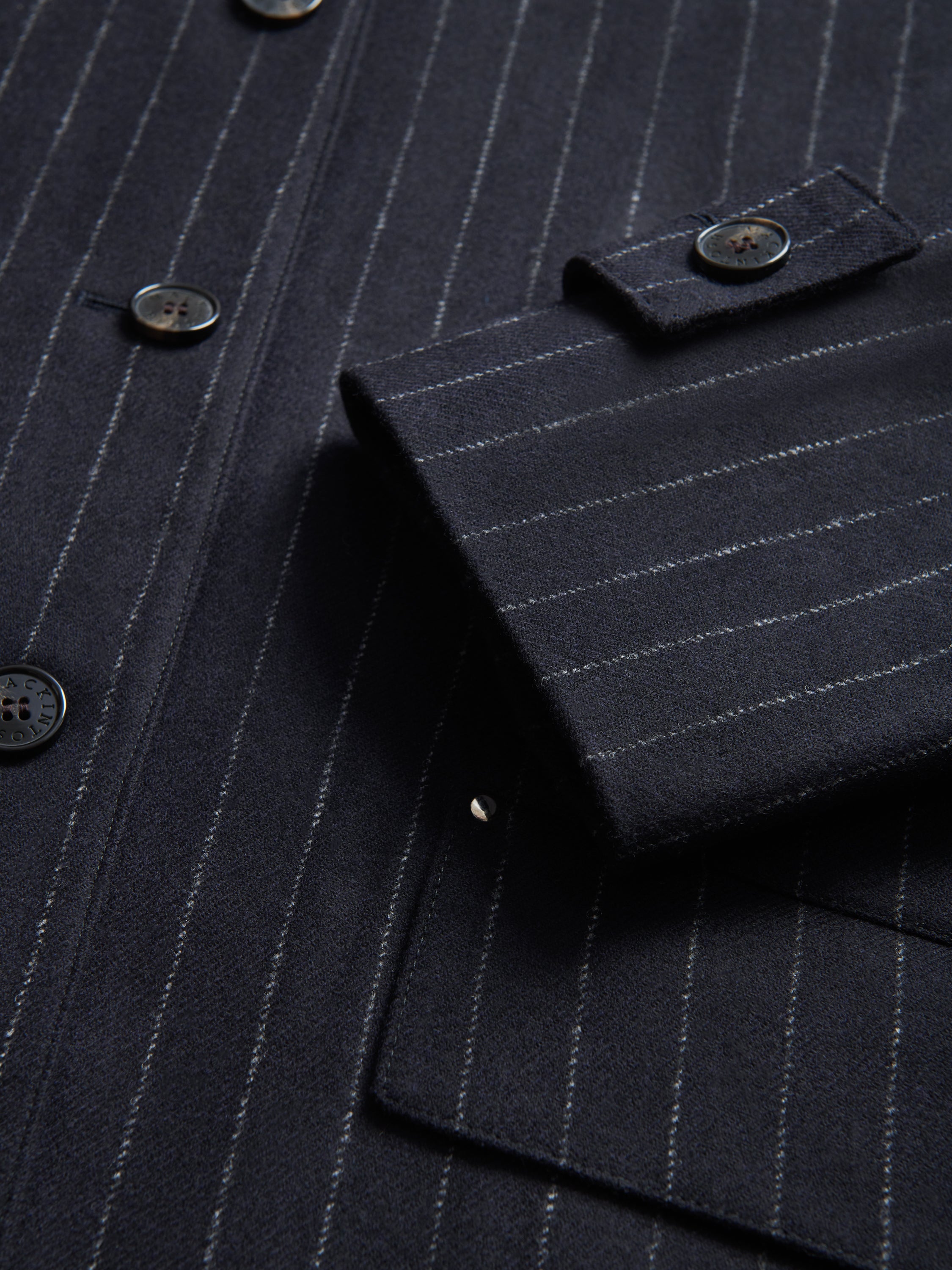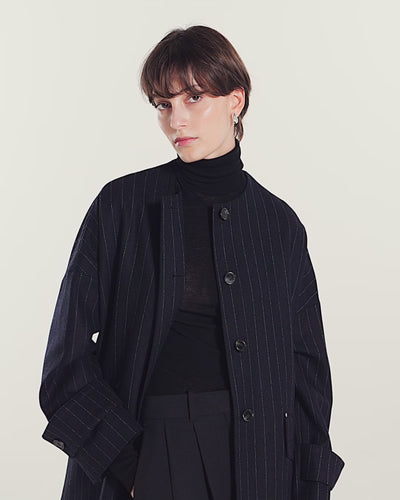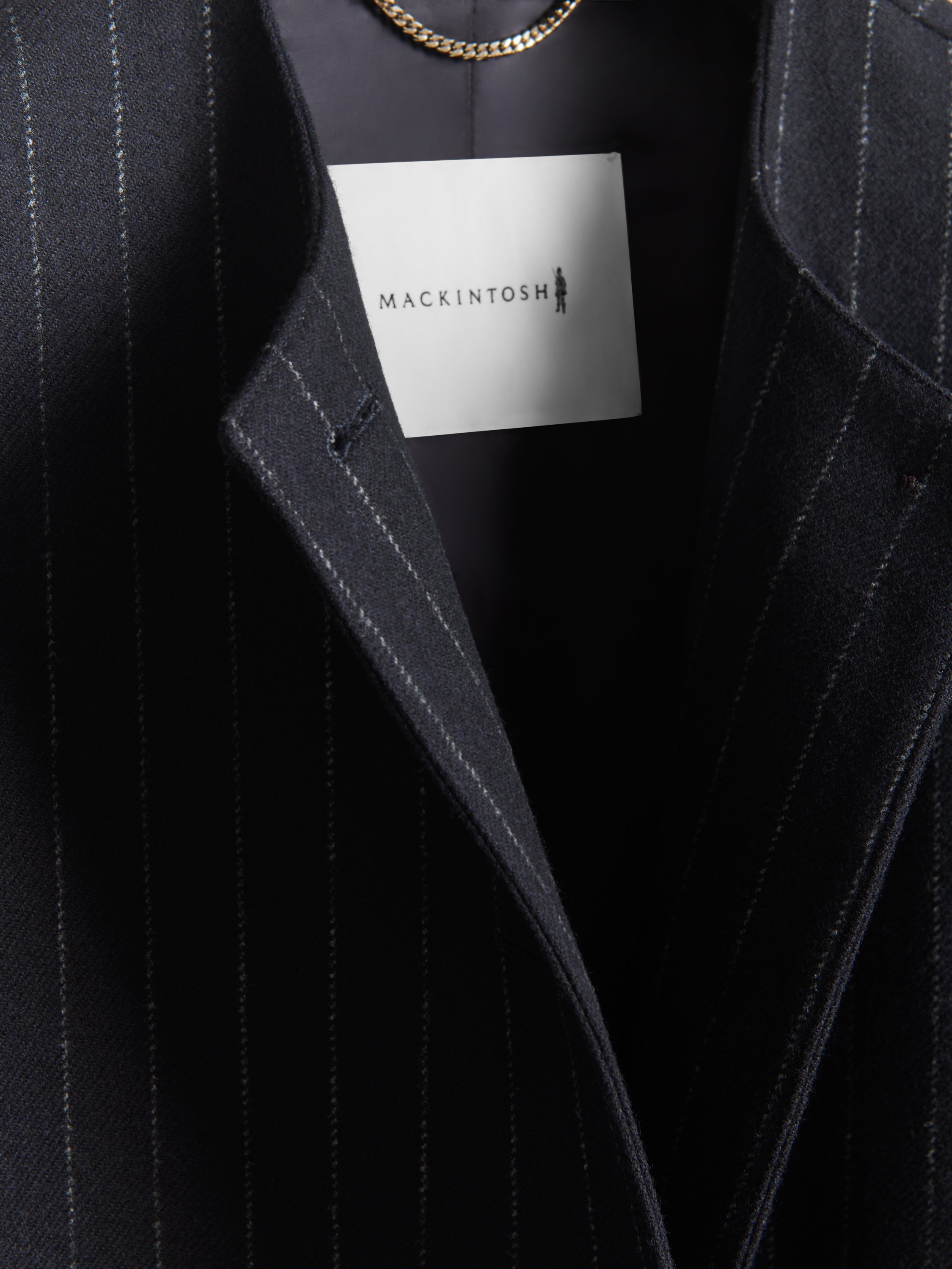 This Humbie is the collarless version of Mackintosh's signature HUMBIE model. It retains the HUMBIE's characteristic A-line silhouette, but with a beautifully defined neckline, offering a more feminine impression.