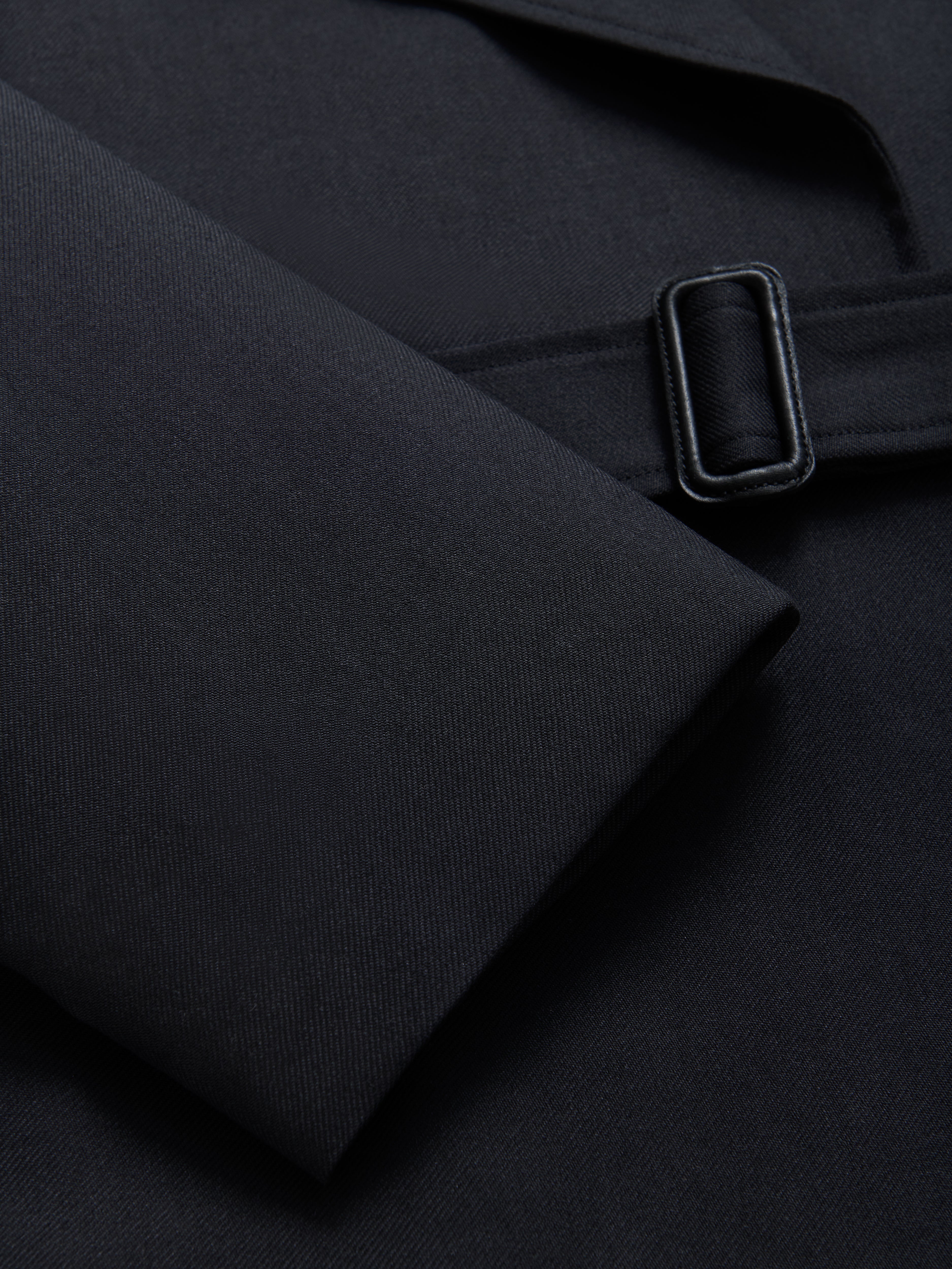 メンズのミリタリーコートを、フェミニンでエレガントなムード漂うガウンコートへと再構築したモデル。無駄を削ぎ落としたミニマルなデザインと、上質な素材と仕立ての良さが際立つ逸品です。