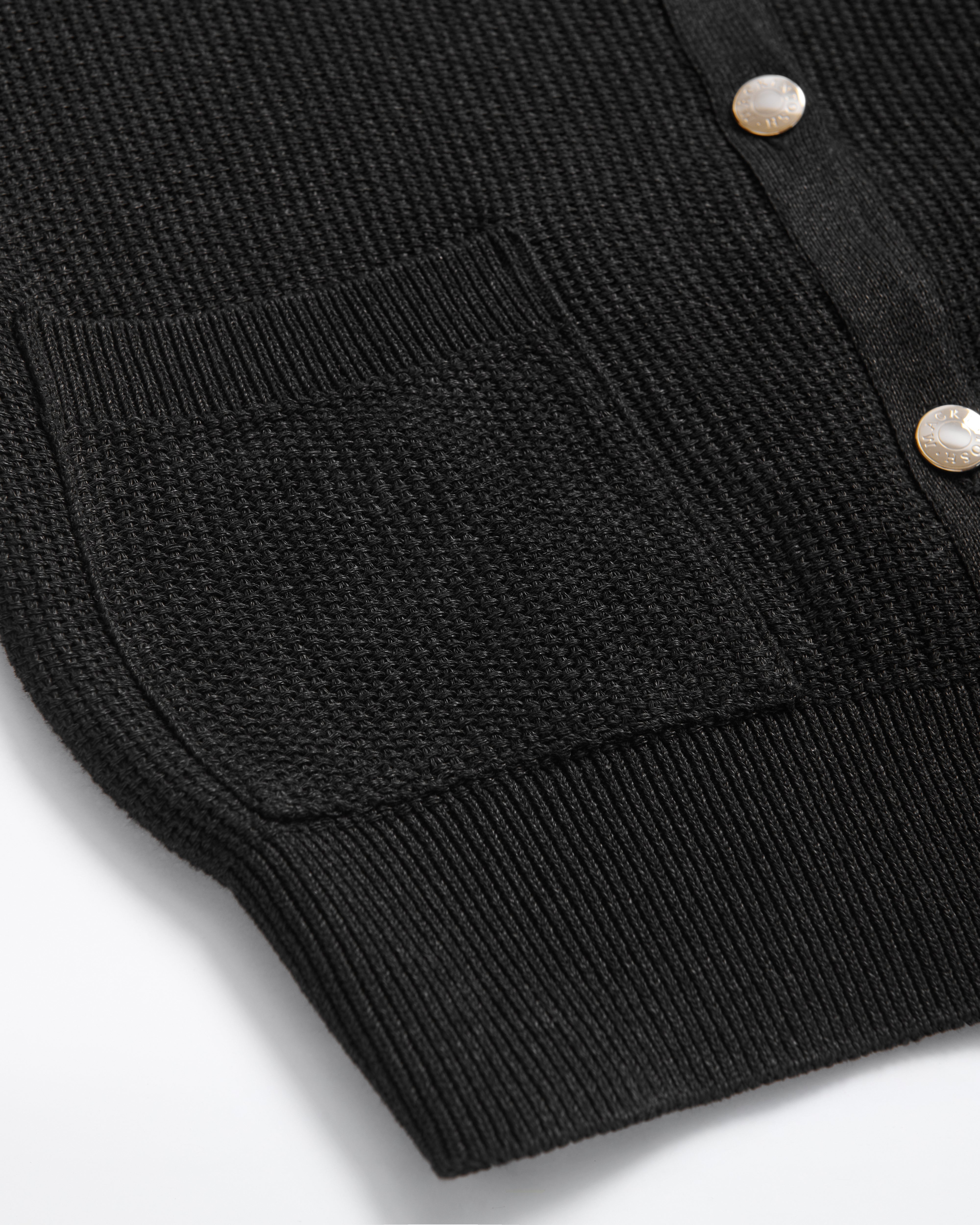 さらりとしたドライな肌触りながら、肌には柔らかい着心地をもたらします。ゴールドのボタンとフロントの二つのポケットが特徴です。