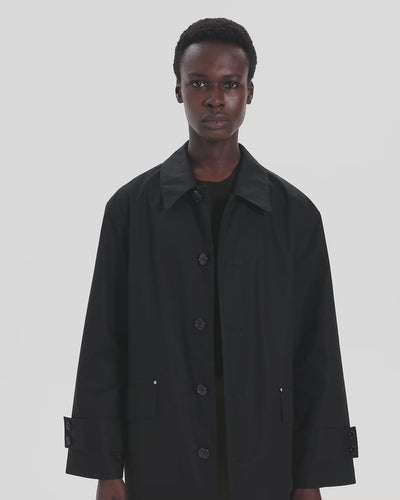 This version of the Humbie overcoat boasts the same wide A-line silhouette as the original. Immaculately constructed from Raintec, it is waterproof and features cuff adjusters and rivets at the flap pockets for a contemporary twist.