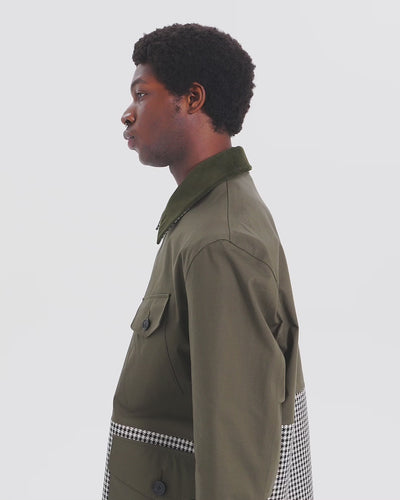 The Jedburgh is a modern update of the Canadian Army MK-2 field jacket. Details such as epaulettes, cuffs, and hem spindles have been removed to create a minimalist design. This piece strikes an exquisite balance between its authentic design and a contemporary mood, achieved by combining different materials.