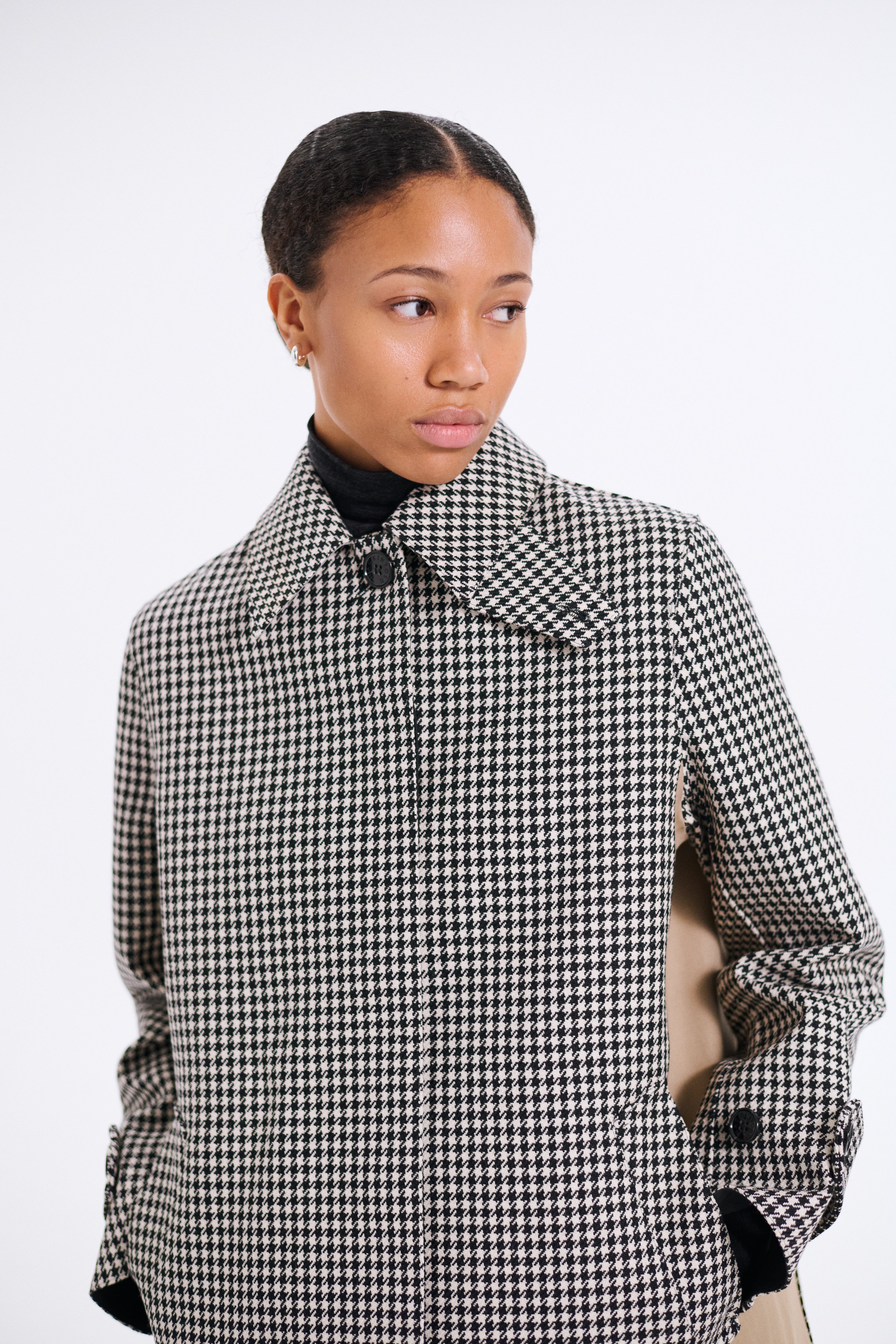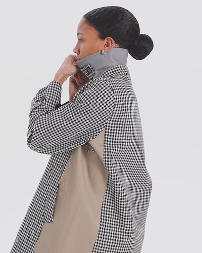 Waterproof bonded wool coat in our Banton silhouette with striking colour block side panels.