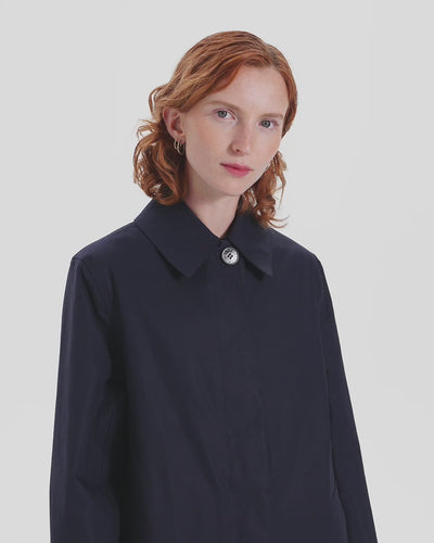 The Macintosh ladies signature model. This piece has a timeless, minimalist design that is not influenced by trends, and a beautiful A-line silhouette. Comes with a detachable liner made making it suitable for all seasons.